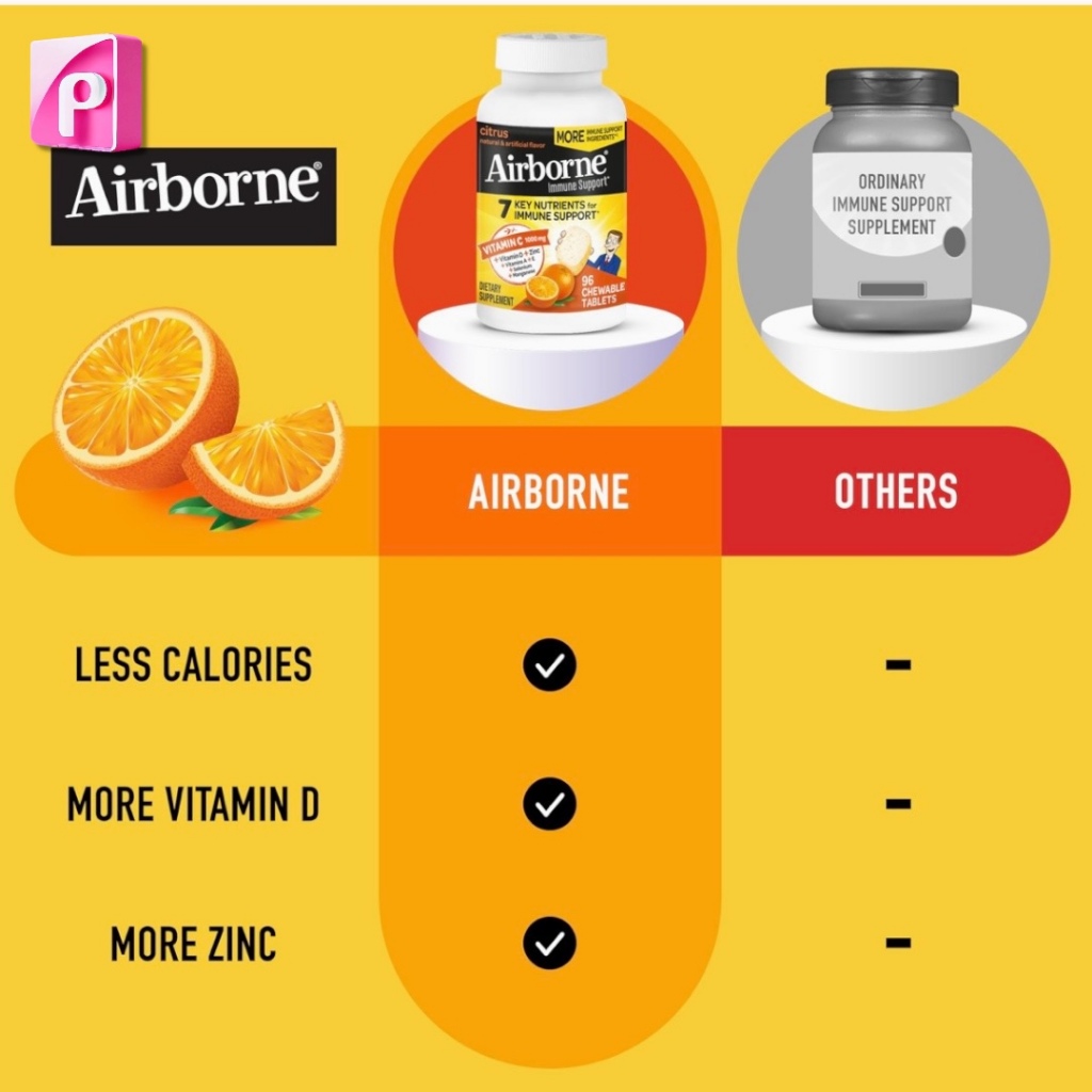 Airborne 1000mg Vitamin C + Zinc Immune Support Chewable Tablets (Very Berry & Citrus) 32/64/96/116