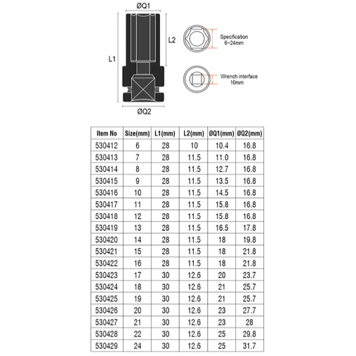 Harden 6mm ~ 24mm 3/8" Hexagon Socket (Professional) 22mm Industrial Chrome Vanadium Tool