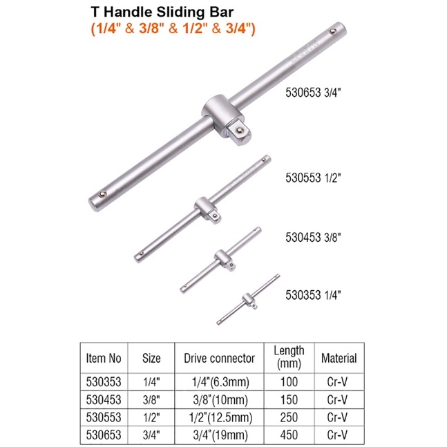 Harden 1/4", 3/8", 1/2" T Handle Sliding Bar 100mm,150mm,200mm,450mm (Professional)