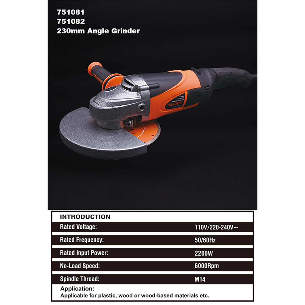 Harden 100mm - 230mm / 750W - 2350W / 220V Electric Angle Grinder (PROFESSIONAL) Long Handle Adjusta