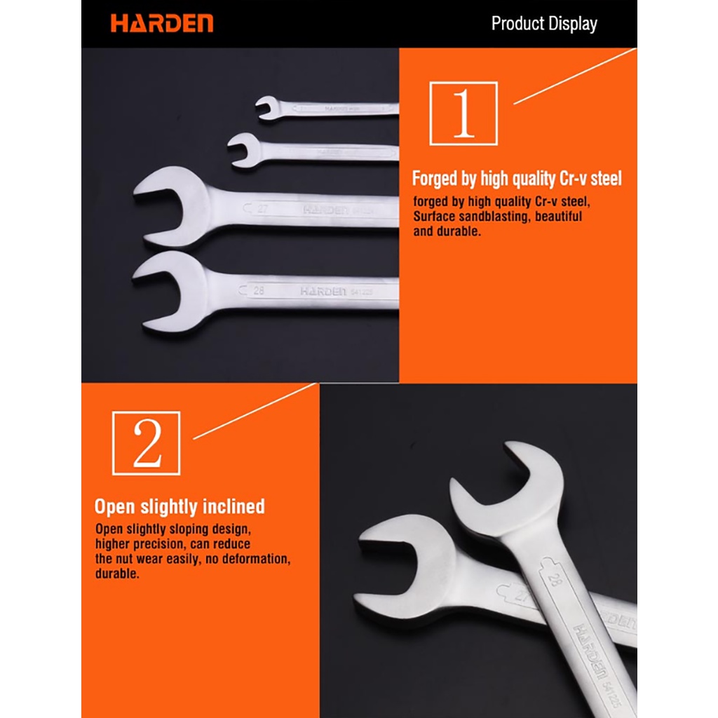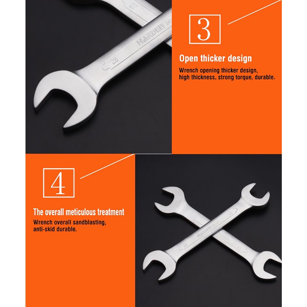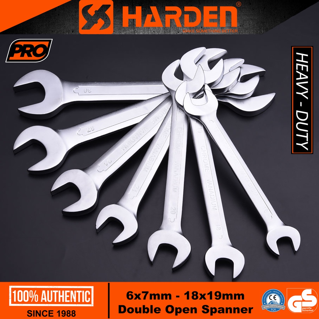 Harden 6 X 7mm - 18 19mm Double Open Spanner Heavy Duty European Chrome Vanadium Open-End