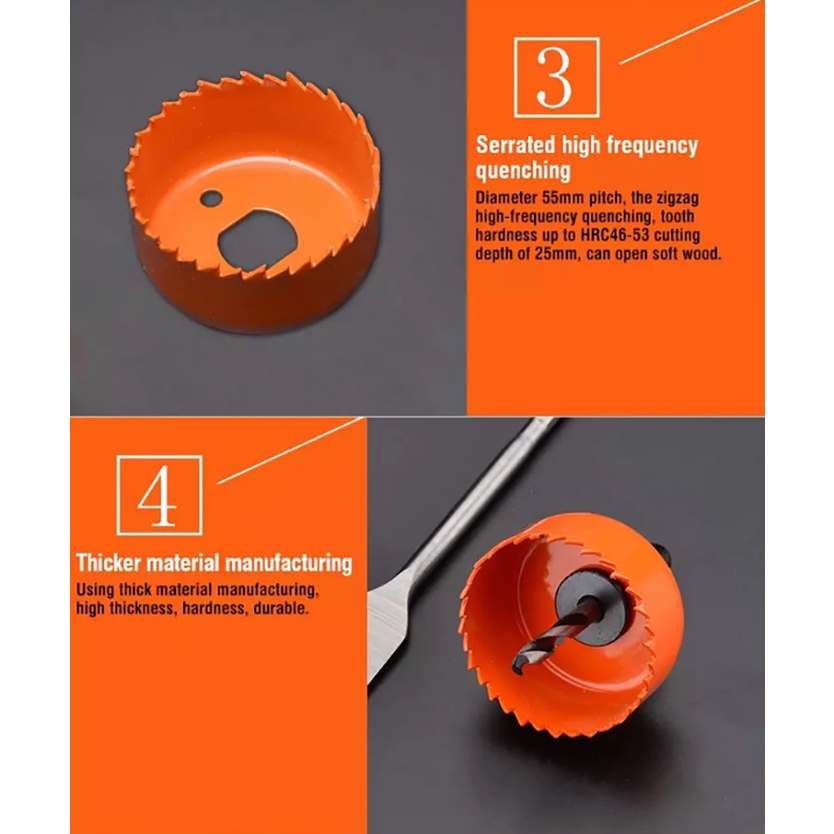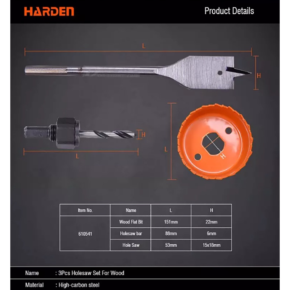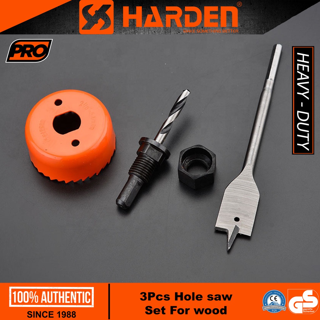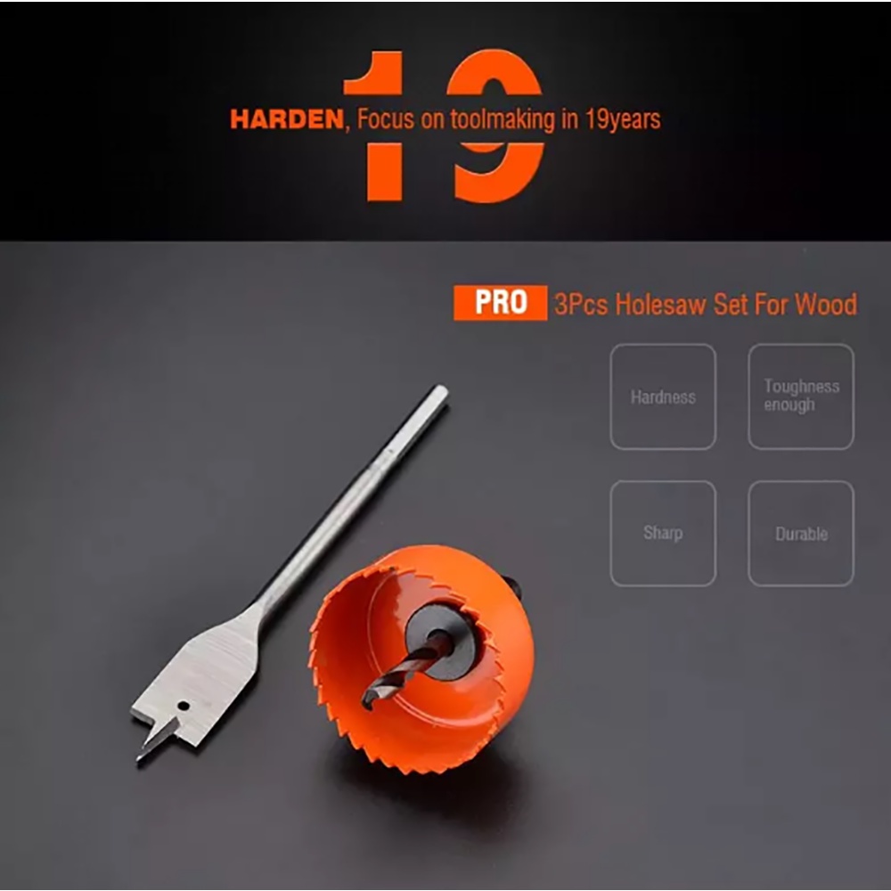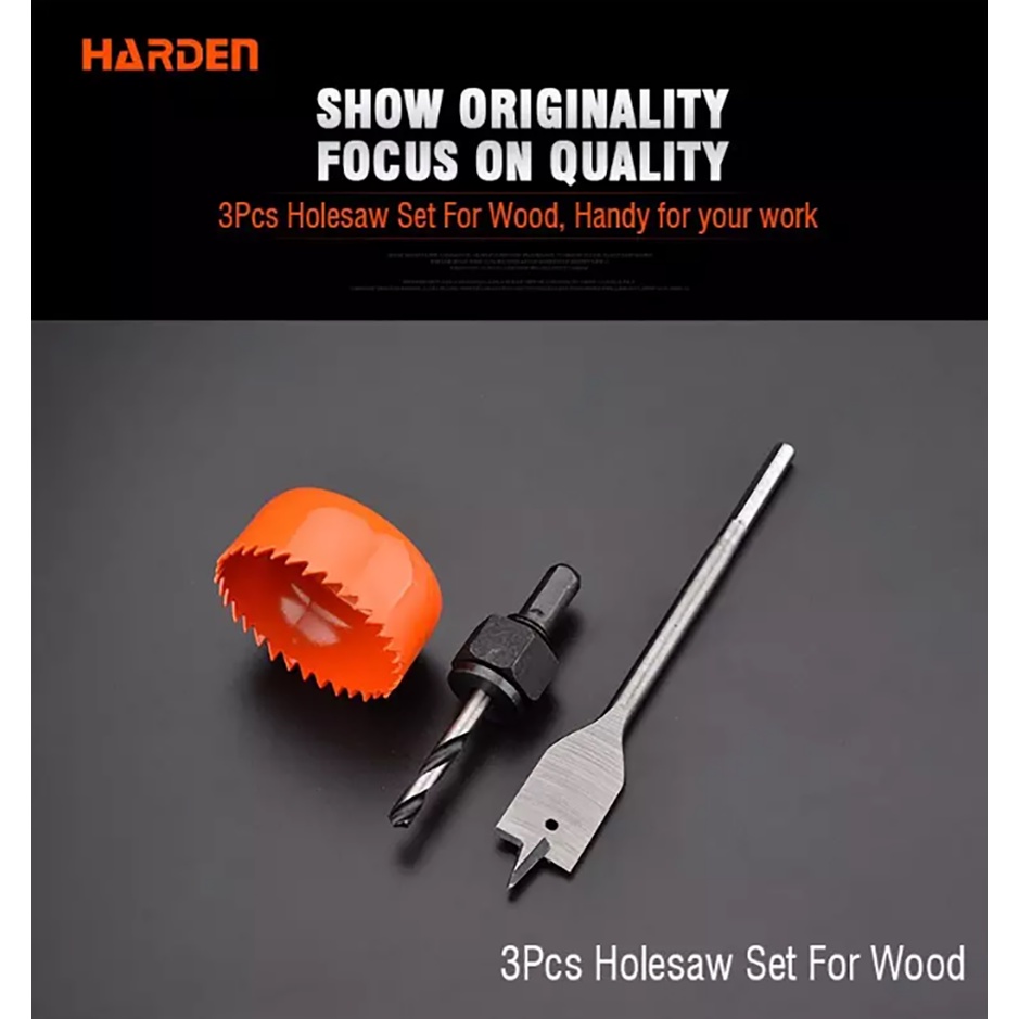 Harden 610541 3Pcs Hole Saw Set For Wood (Professional) High Carbon Steel