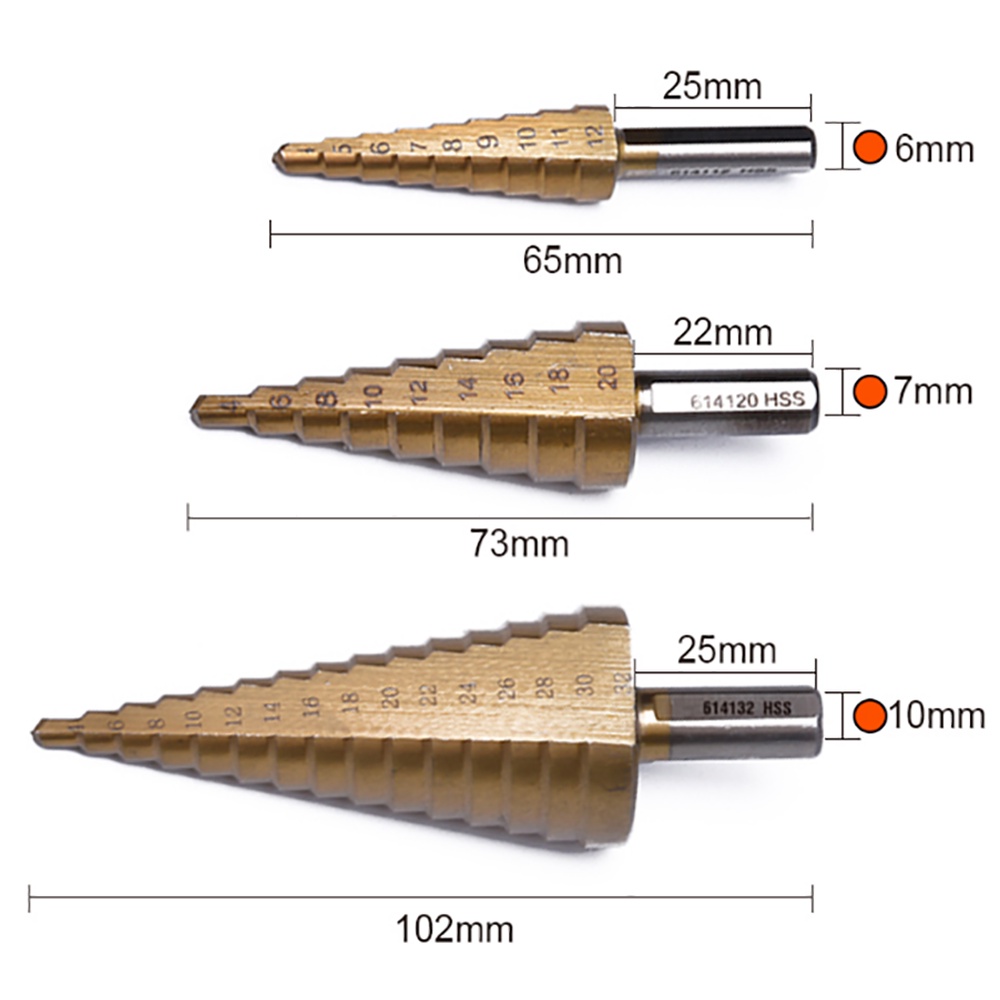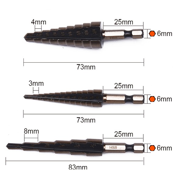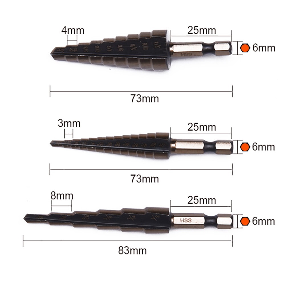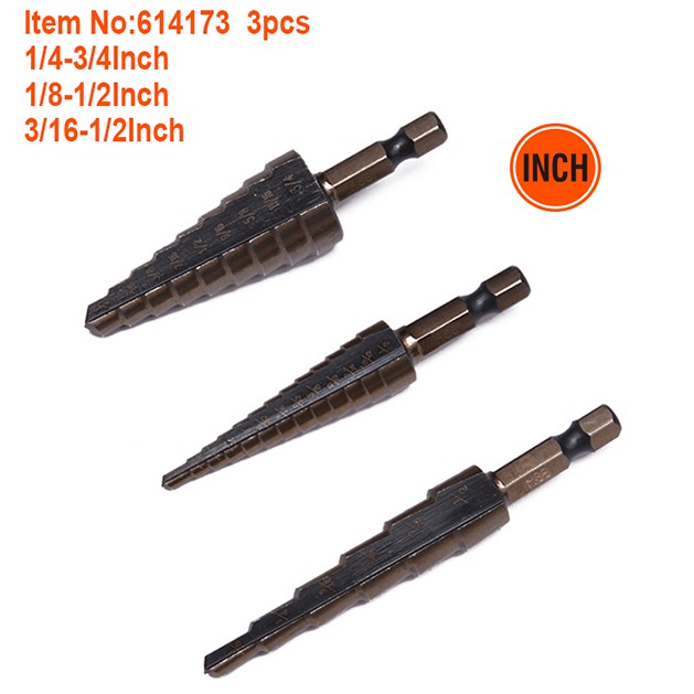 Harden Step Drill Bit Set Inches, Mm (Professional) High Speed Steel Metal Hss 3 Pcs