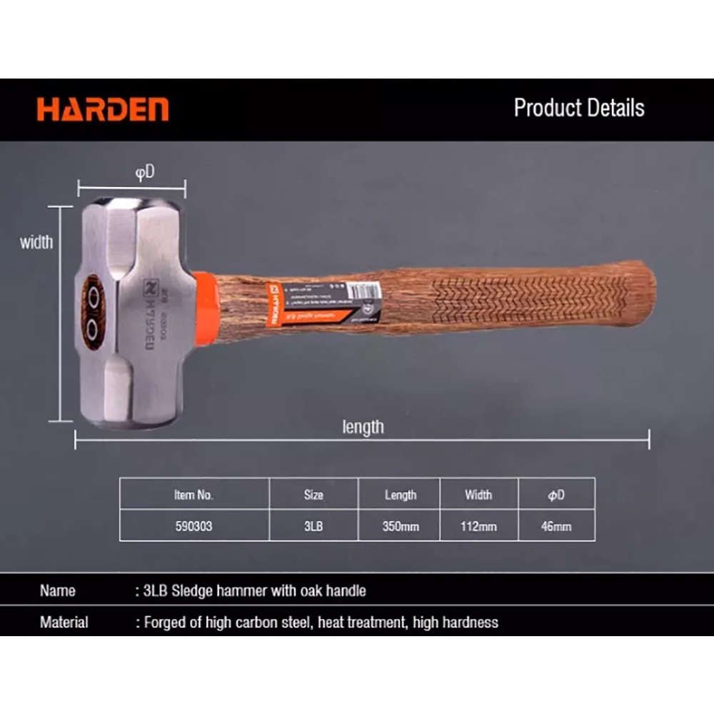 Harden 590303 3lb Sledge Hammer Oak Wood Handle (Professional)