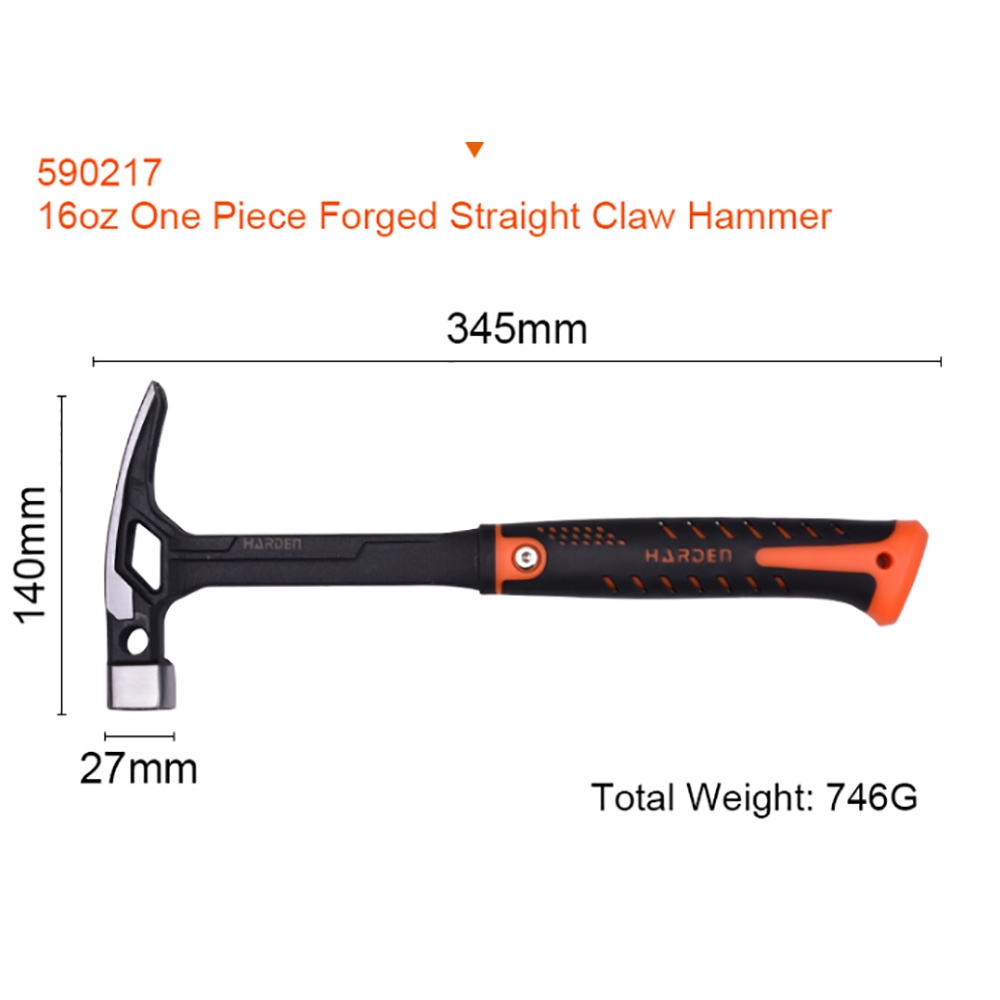 Harden 590217 16oz Forged Straight Claw Hammer (Industrial) One Piece