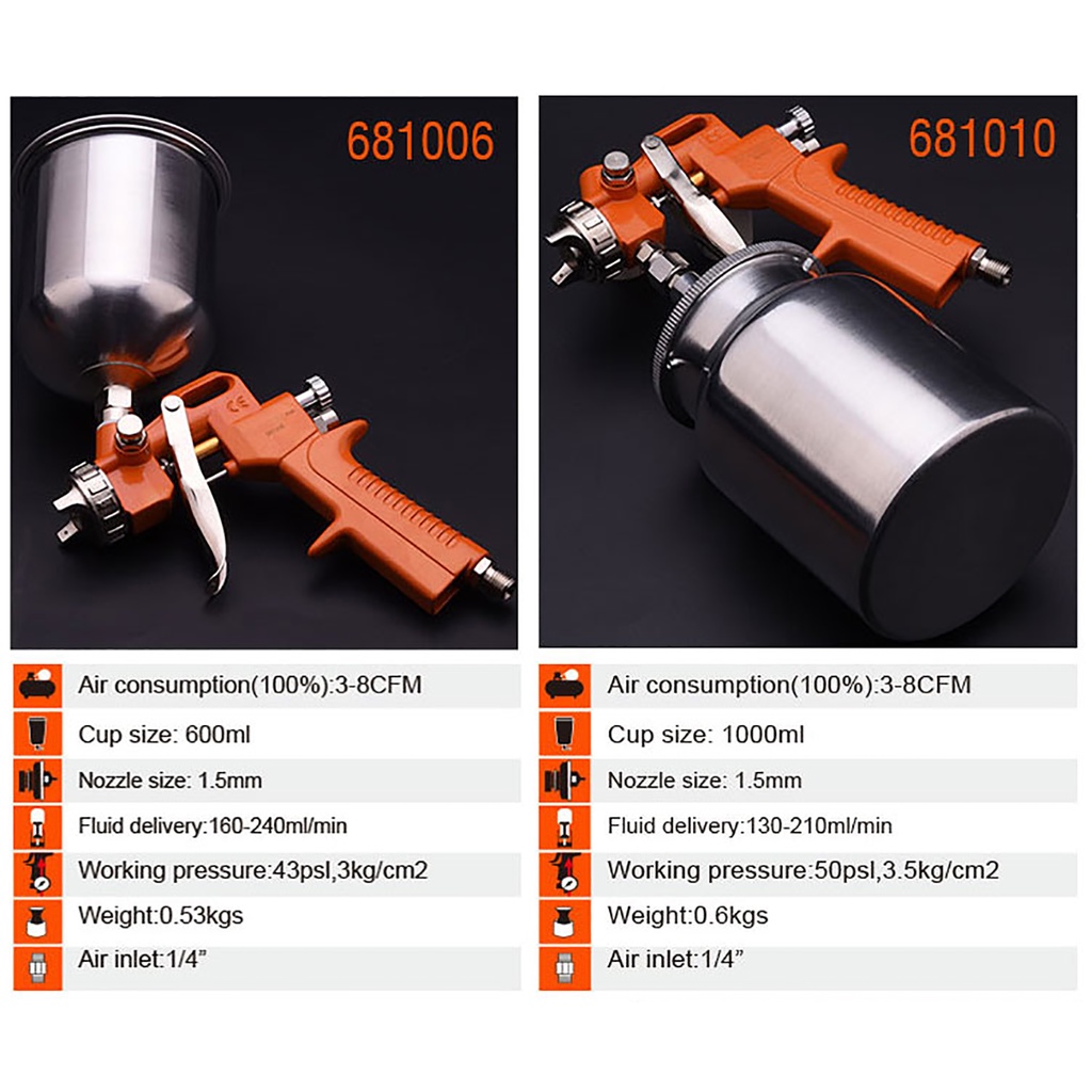 Harden 600ml, 1000ml Spray Gun (Professional) Hand Gravity Feed Pneumatic Painting Paint H
