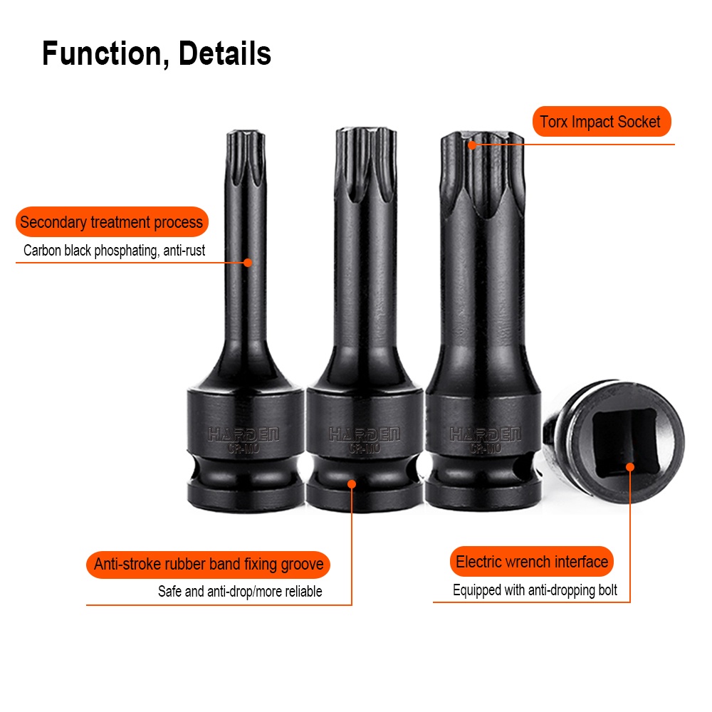 Harden 537038 8Pcs 1/2" Impact Torx Bit Set (Industrial) Professional Custom Crmo