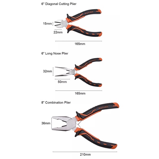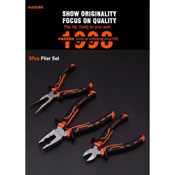 Harden 560179 3Pcs Pliers Set (Professional) Tool Multi Function Carbon Steel Cutting Plier