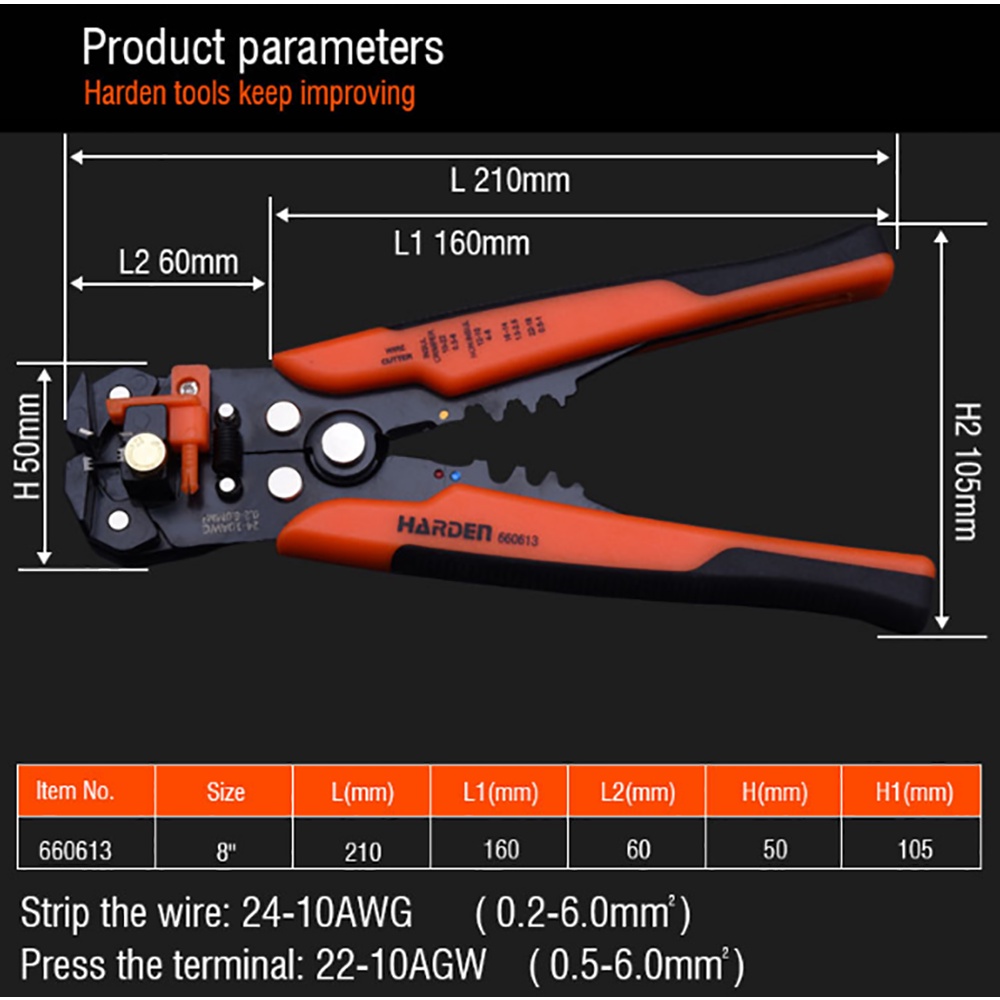 Harden 660613 205mm Automatic Wire Stripper (Professional) Cable Crimping