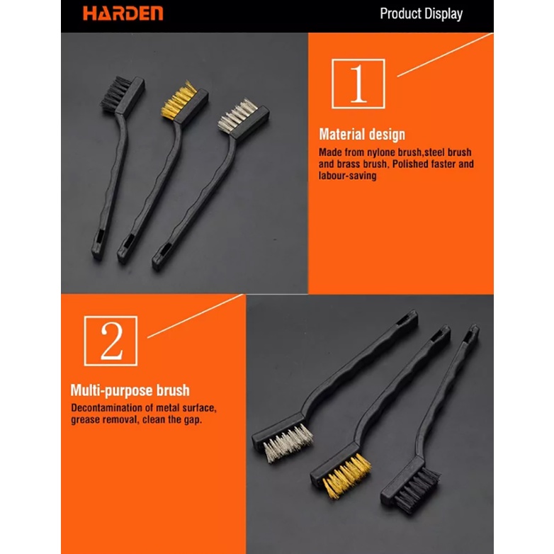 Harden 660241 175mm 3Pcs Brush Set Multi Purpose Professional Mini Brushes Car Cleaning Nylon