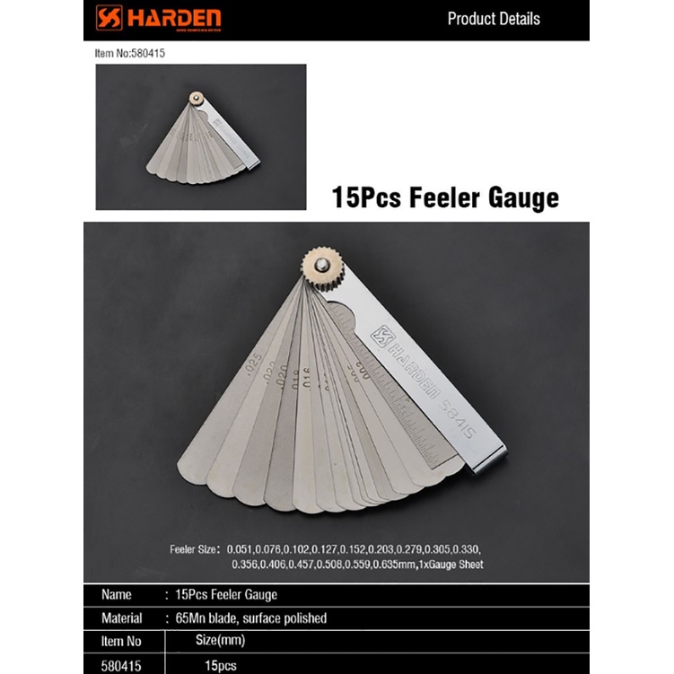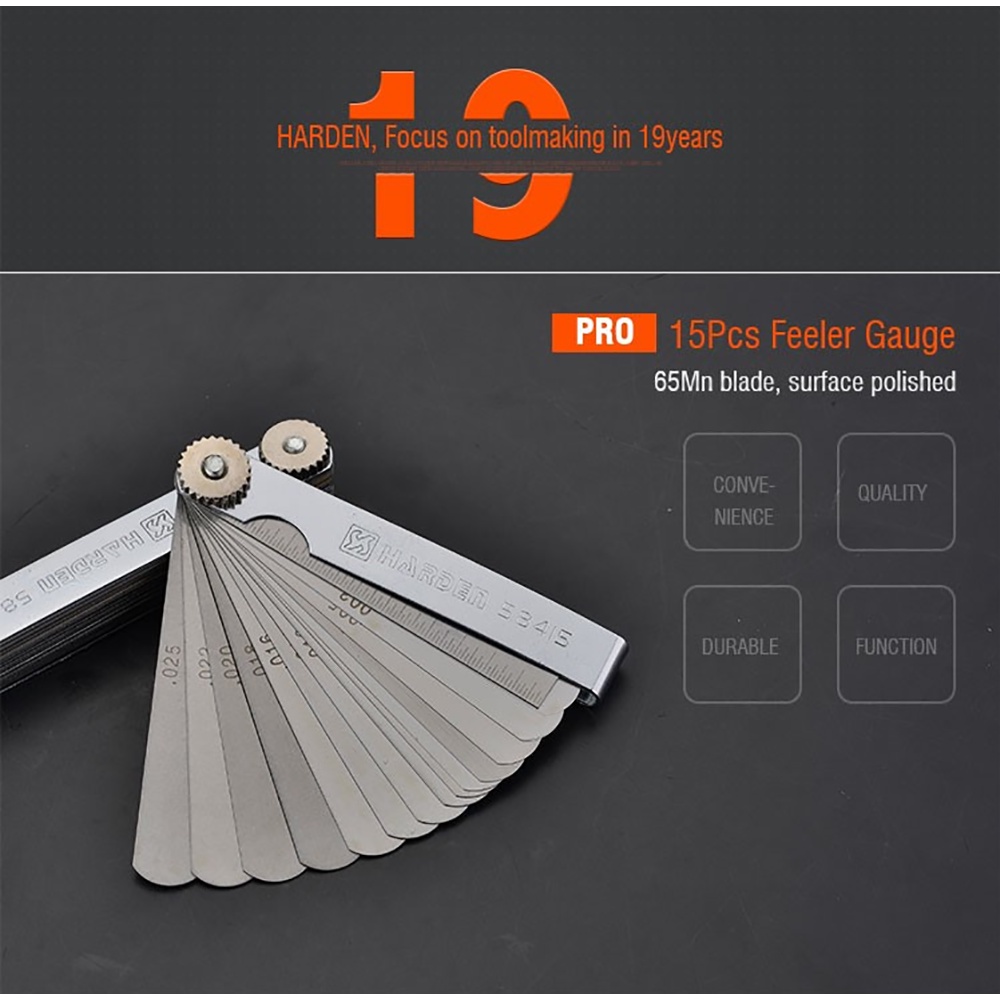 Harden 580415 15Pcs Feeler Gauge (Professional) Tool Custom 65mn Metal Set