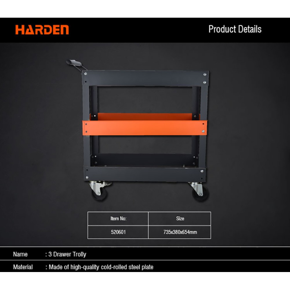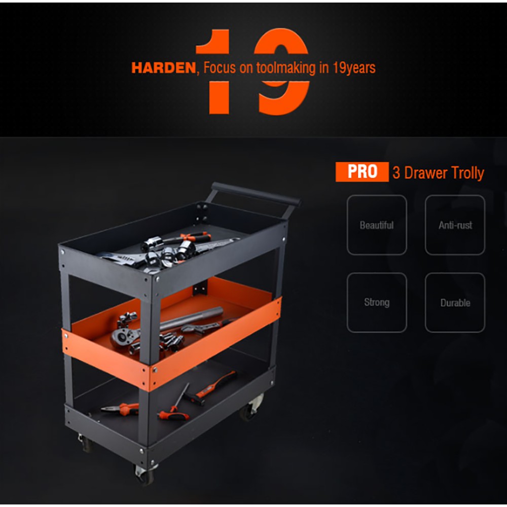 Harden 520601 3 Drawer Trolly (Professional) Household Tool Steel Three Cabinet With Wheels