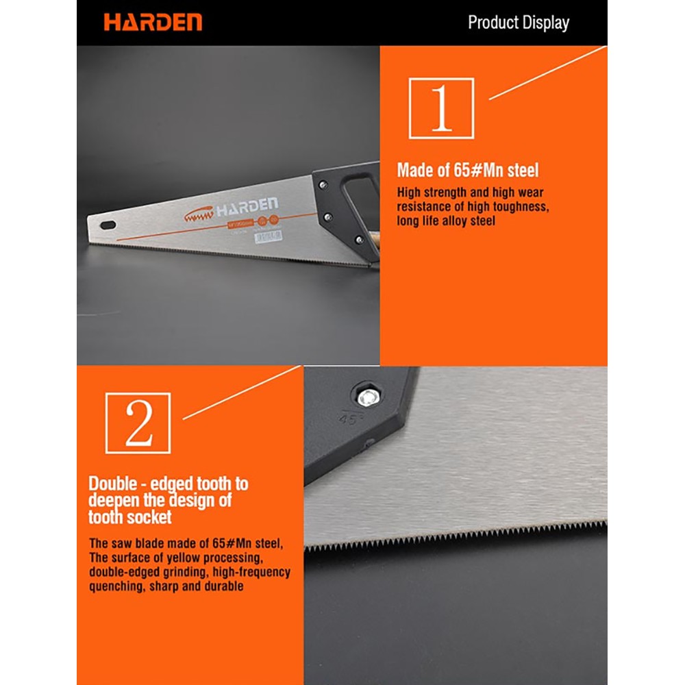 Harden 600860 350mm Plastic Water Pipe Saw 65 Mn Steel With Industrial Anti-Skid Handle