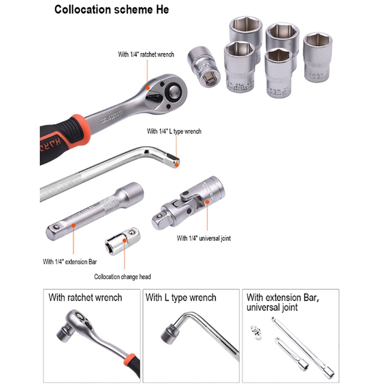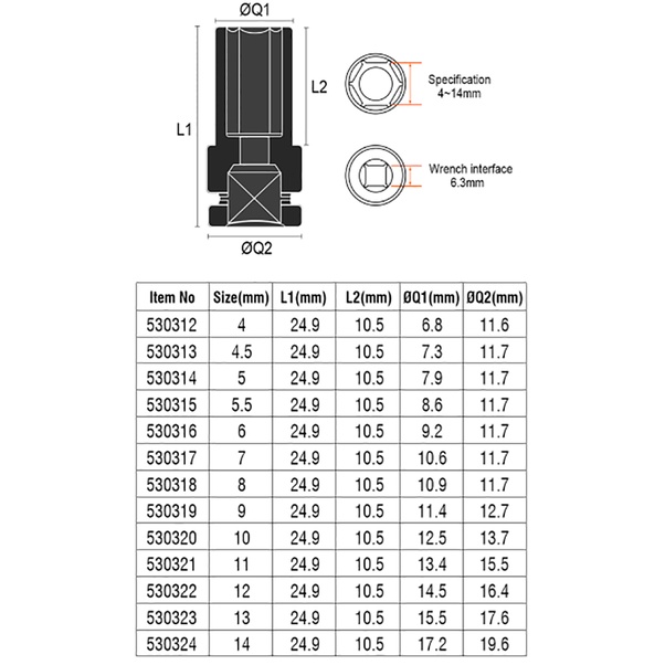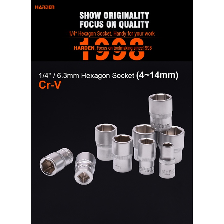 Harden 4mm-14mm 1/4" Hexagon Socket (Professional) Chrome Vanadium Auto Repair Sockets