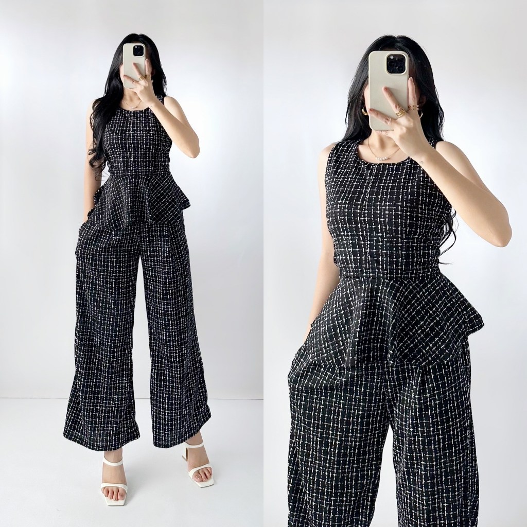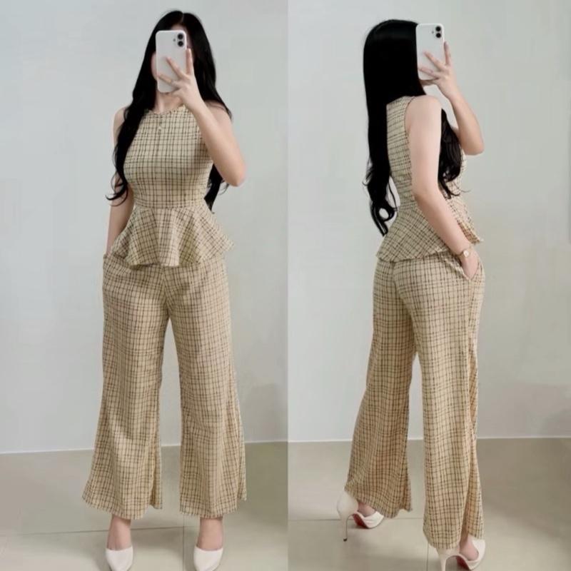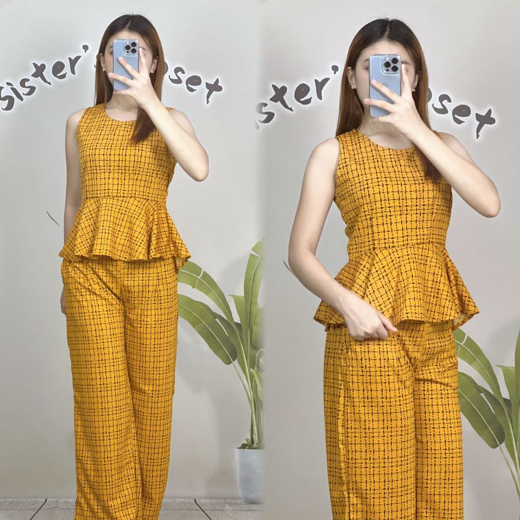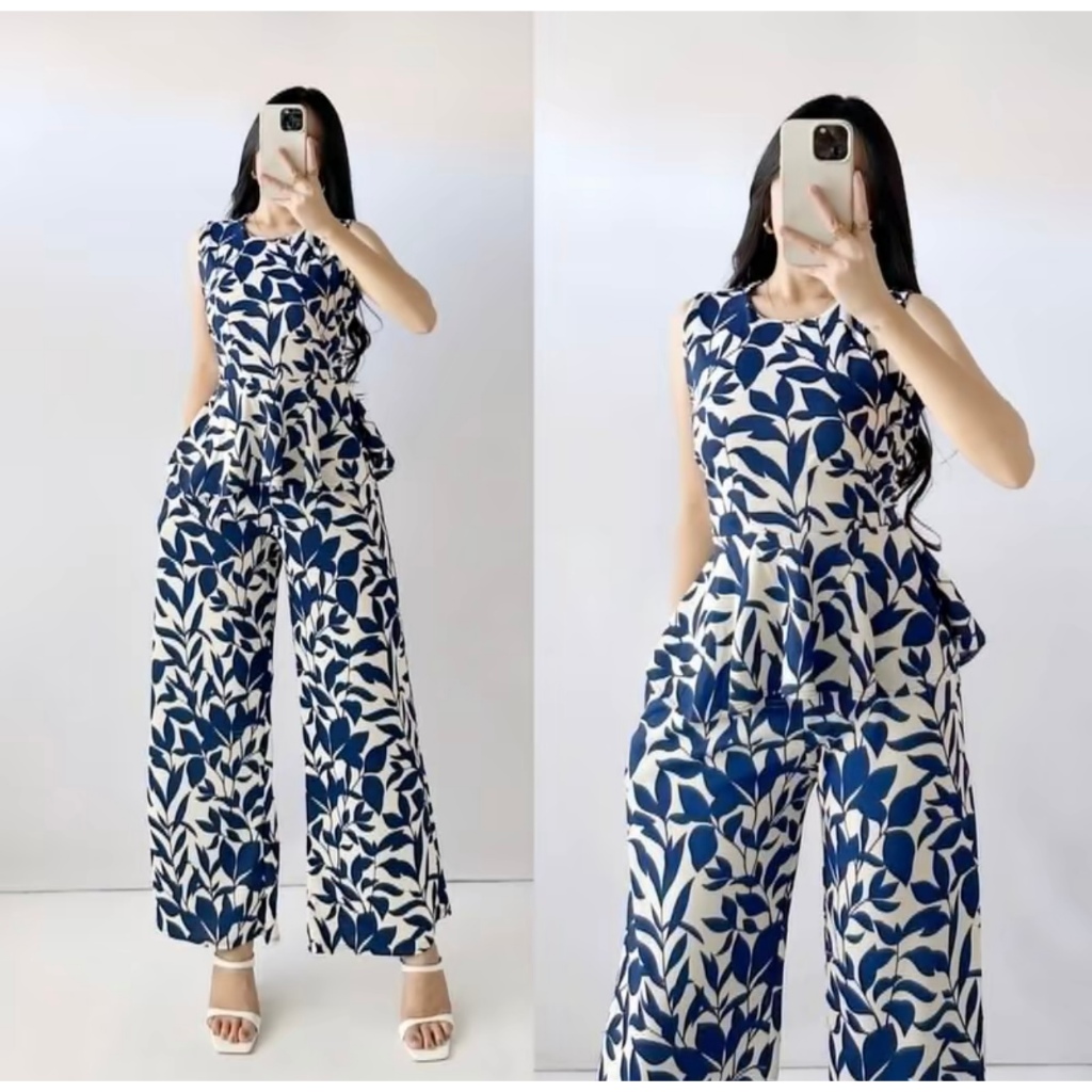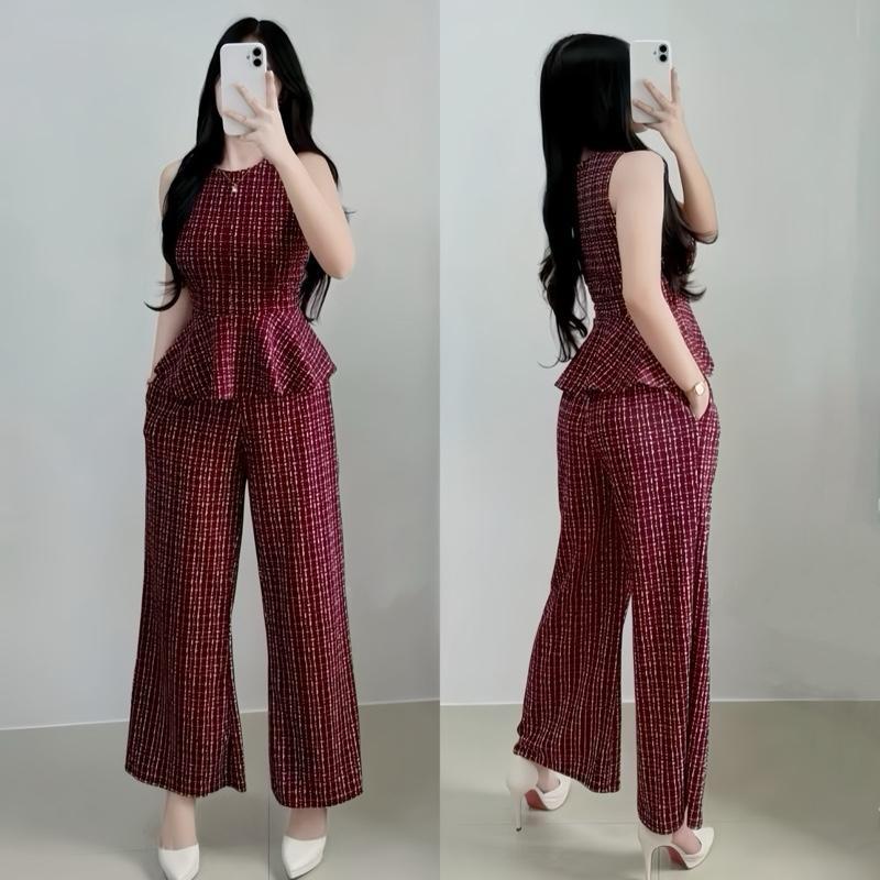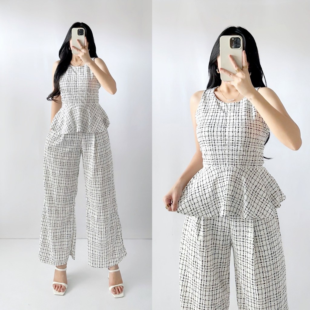 Vernice Print Casual Crepe Terno with Peplum Top & Wide Leg Pants for Women - Stylish Everyday Wear