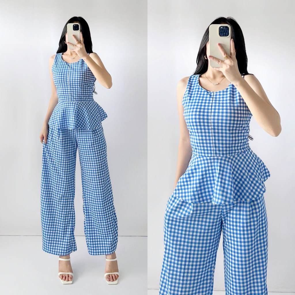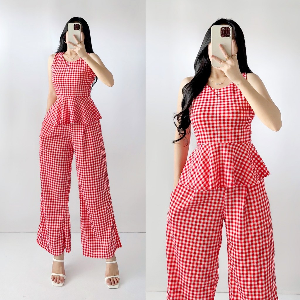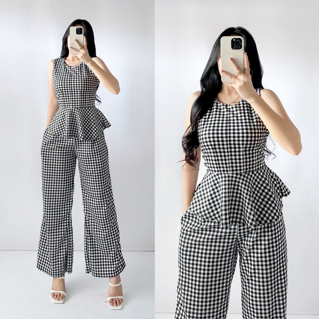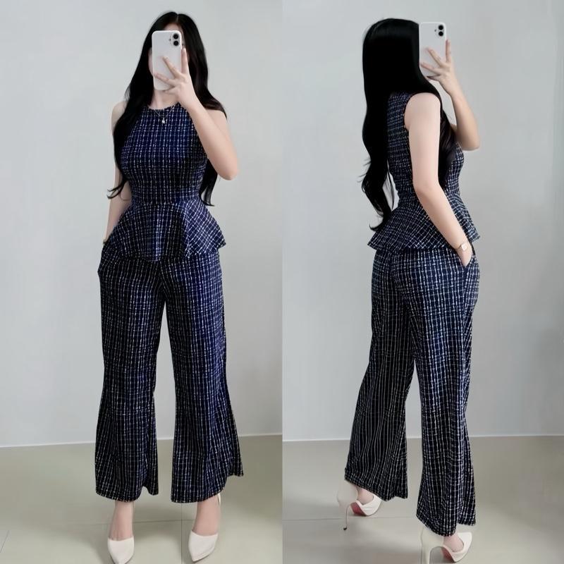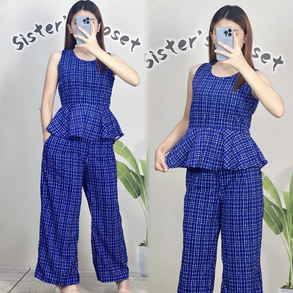 Vernice Print Casual Crepe Terno with Peplum Top & Wide Leg Pants for Women - Stylish Everyday Wear