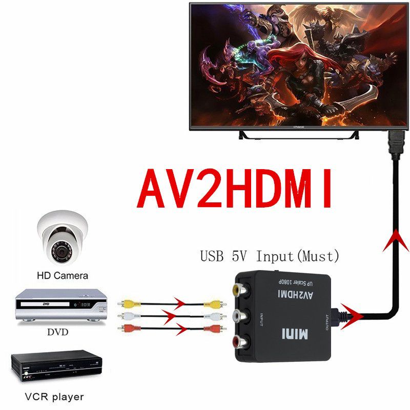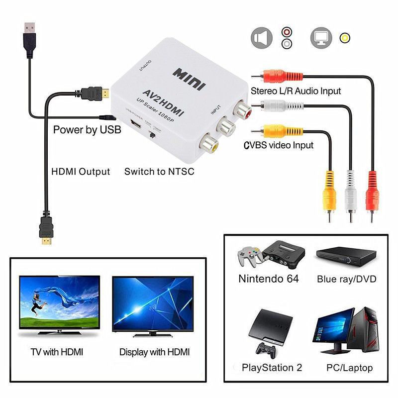 HDMI to RCA Converter (AV2HDMI) Up Scaler 1080p