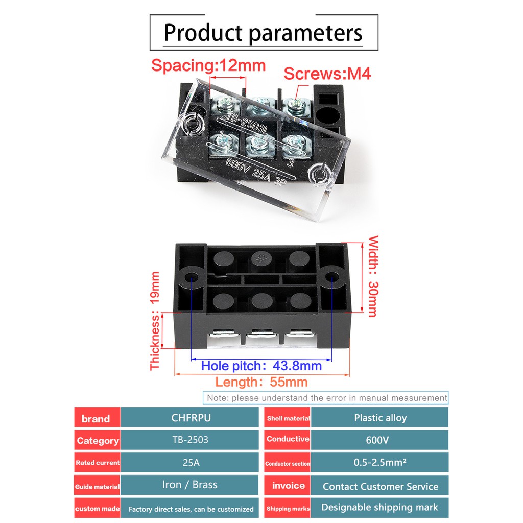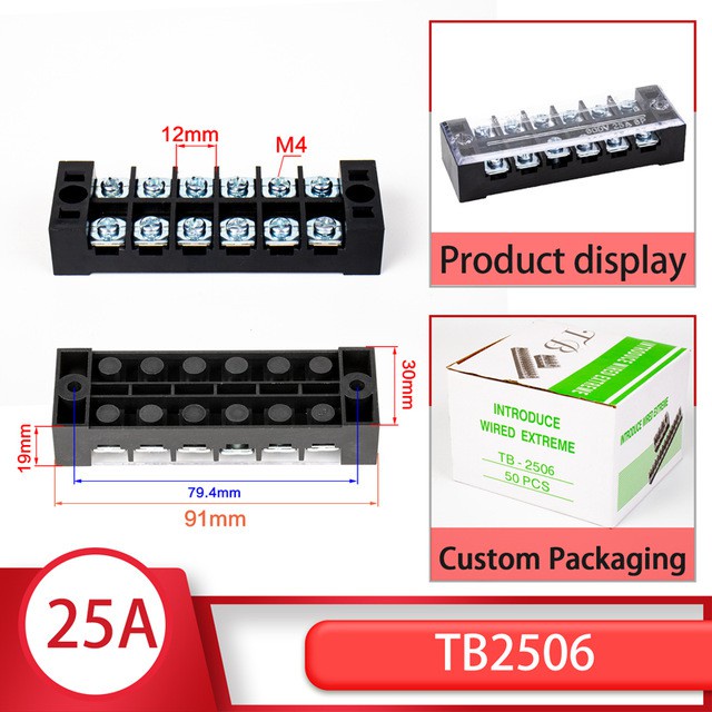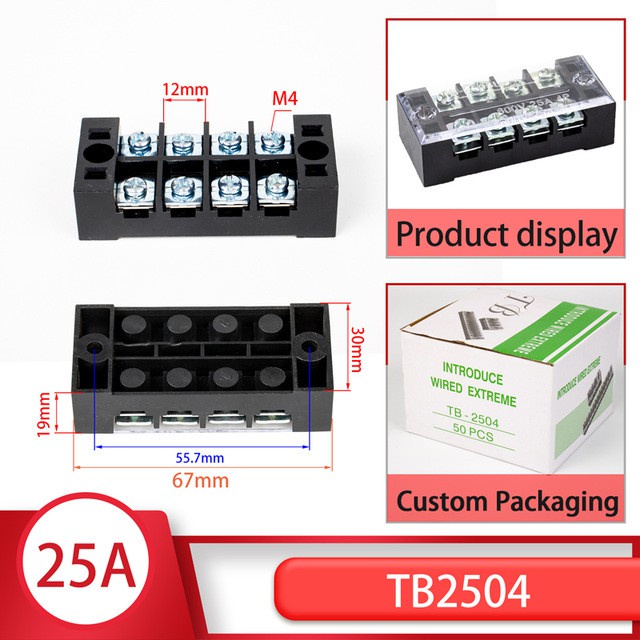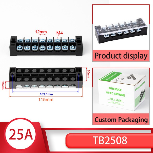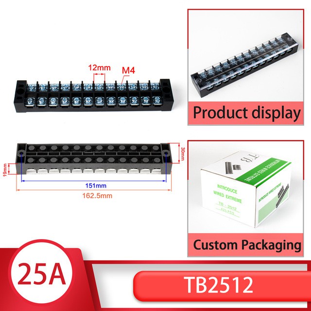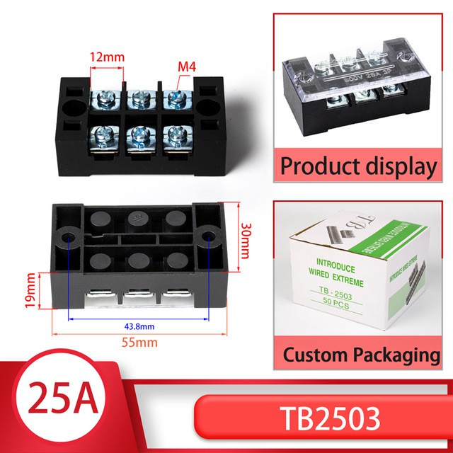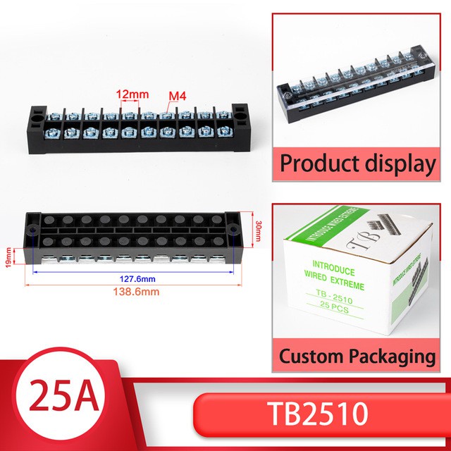 1pcs 25A 600V TB-2503 TB-2504 TB-2506 TB-2510 Dual Row Barrier Screw Terminal Block Strip Wire Connector Wiring tool