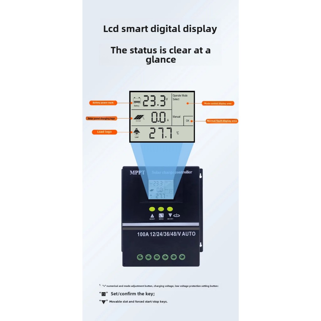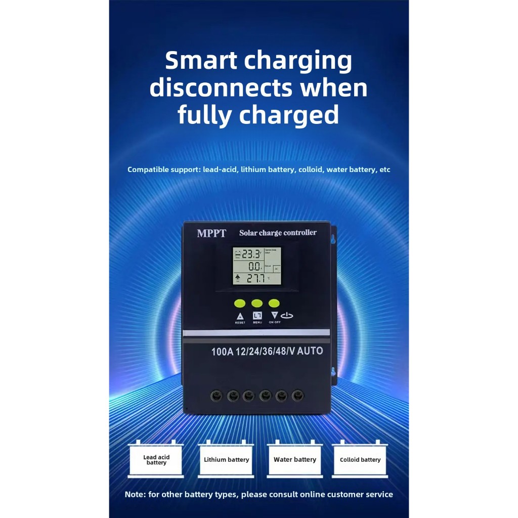 60A/80A/100A 12V 24V 36V 48V MPPT Solar Ccontroller AUTO Battery Charger with LCD,Automatic VID