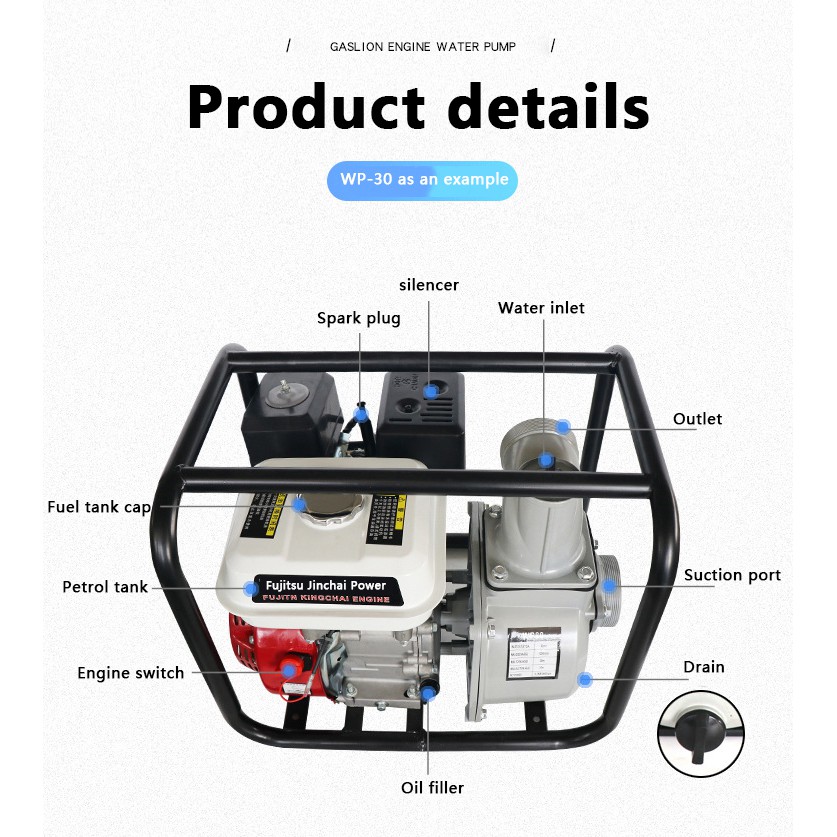 Japan Industrial 8.5HP 3"x3" 4T Gasoline Engine Water Pump Set for agriculture Air-Cooled