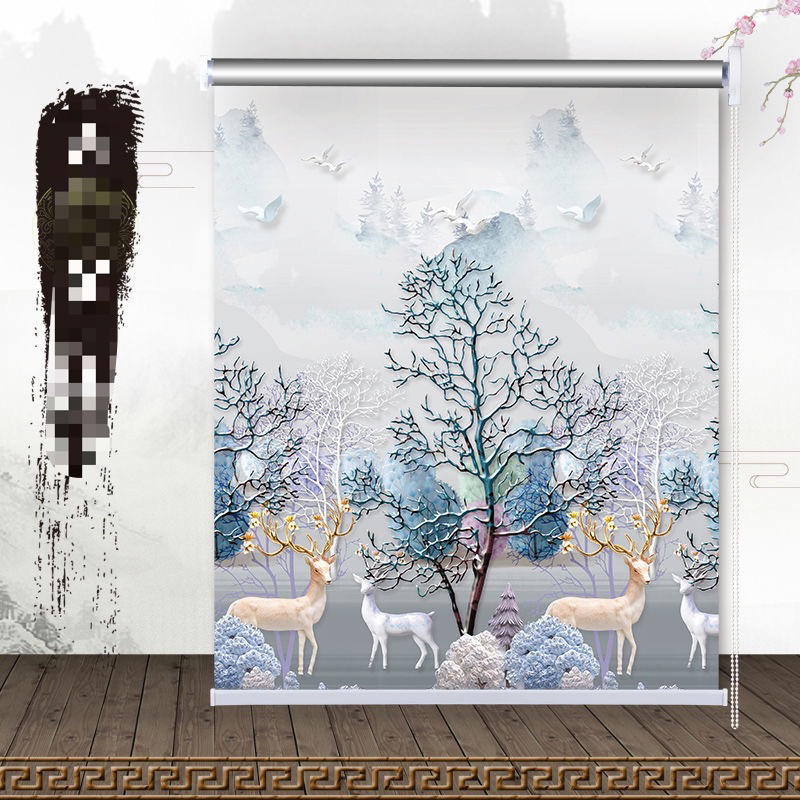 3D pattern Curtains Blackout Roll-Up Blackout Lifting Thickened Version Perforation-Free Bedroom