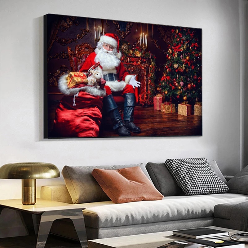 Modern Christmas Santa Claus Gift Picture Canvas Painting Posters and Prints Wall Art Picture for Home Living Room Wall Decor