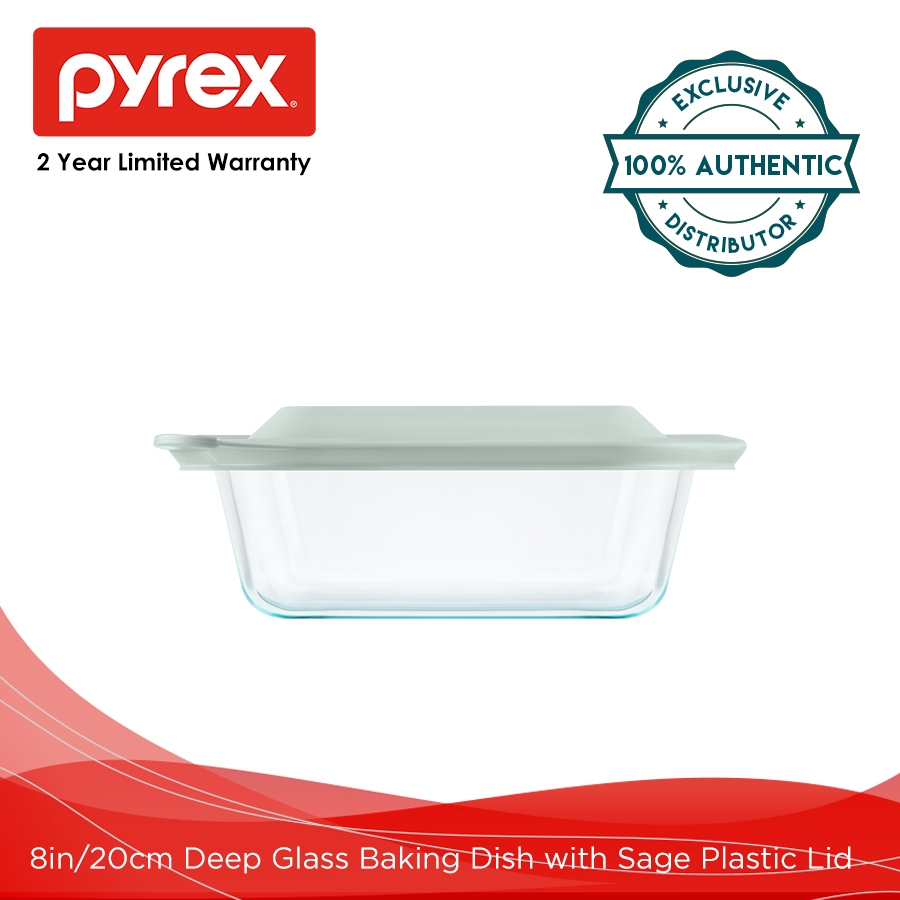 8"/20cm Deep Glass Baking Dish with Sage Plastic Lid