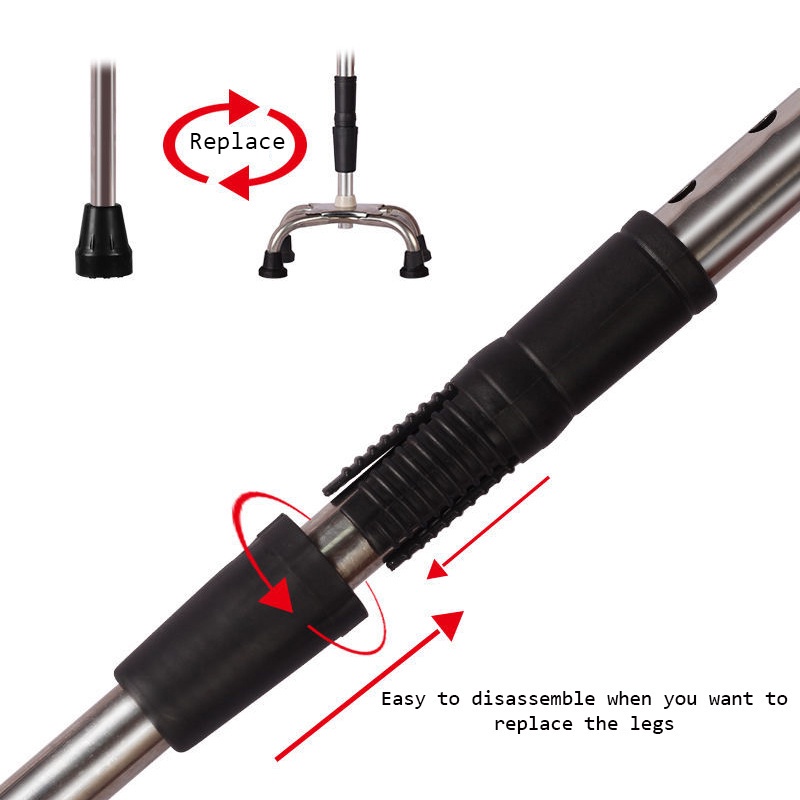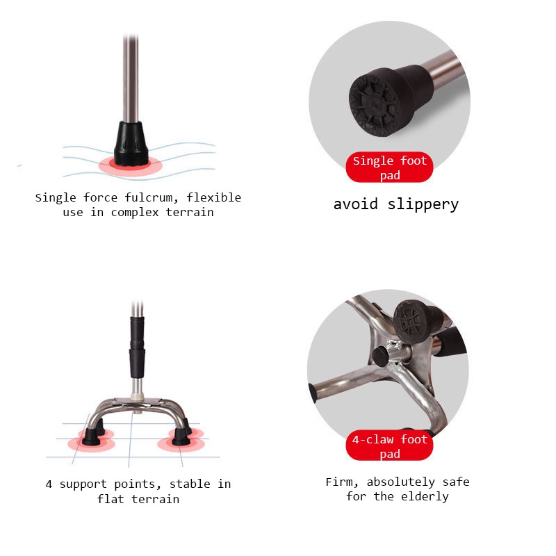 Quad Cane For The Elderly Stainless Steel Heavy Duty Trusty Cane Eregantoshop