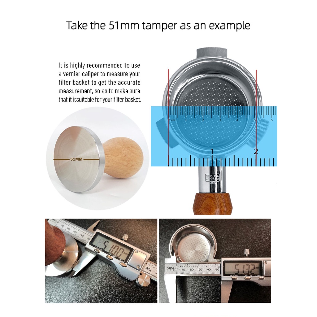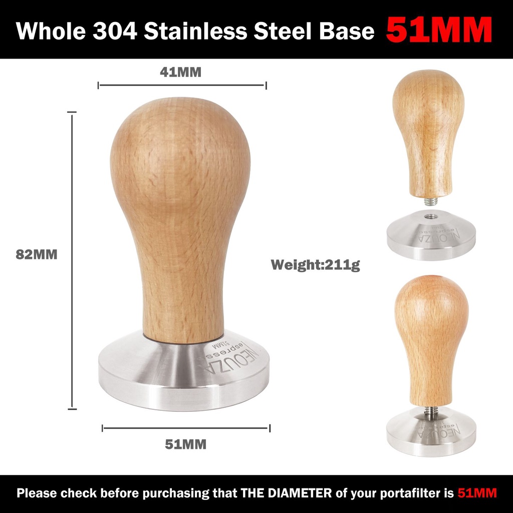NEOUZA Coffee Machine Espresso Tamper 51mm Barista Coffee Powder Bean Press Wooden Handle Stainless Steel Flat Base,Fit for 51mm Delonghi EC680/EC685 Portafilter