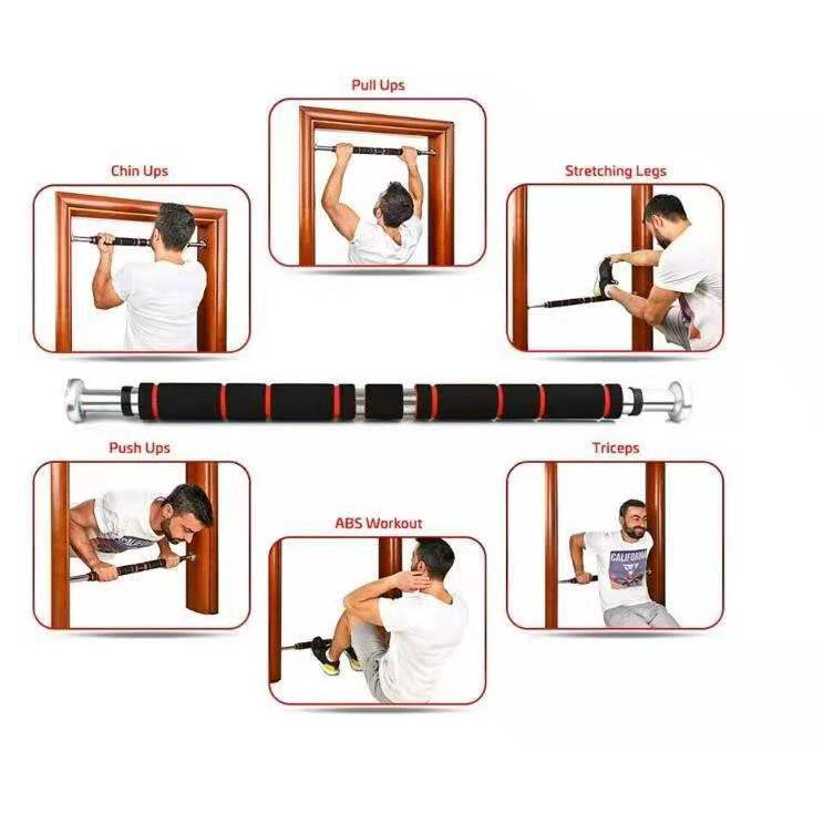 Lengthening Foam Adjustable Door-Way Pull Up Gym Bar (Black/Red)