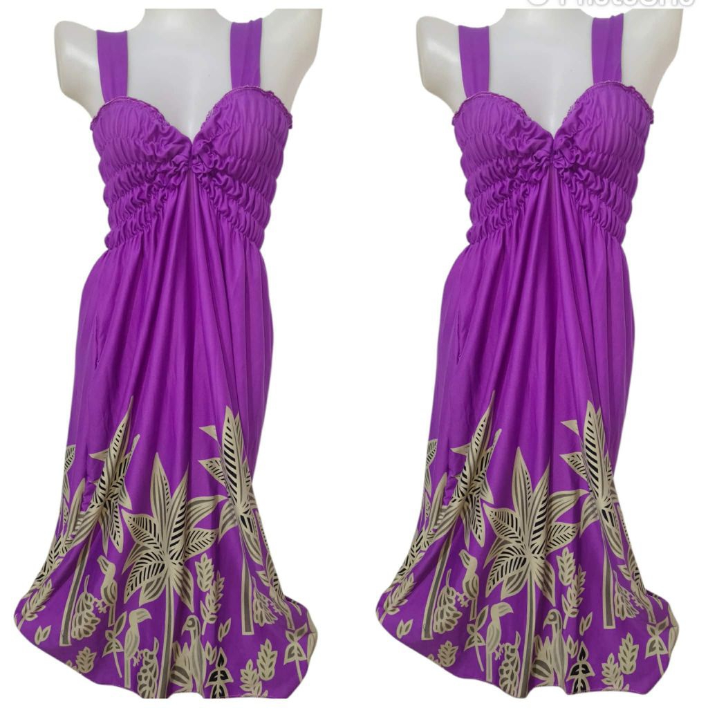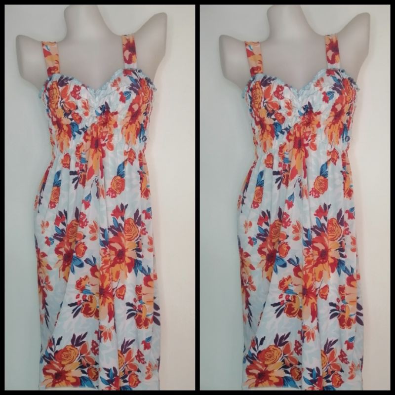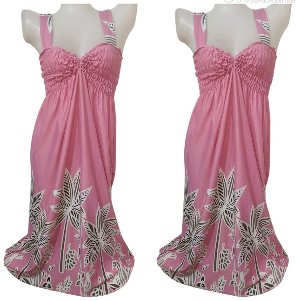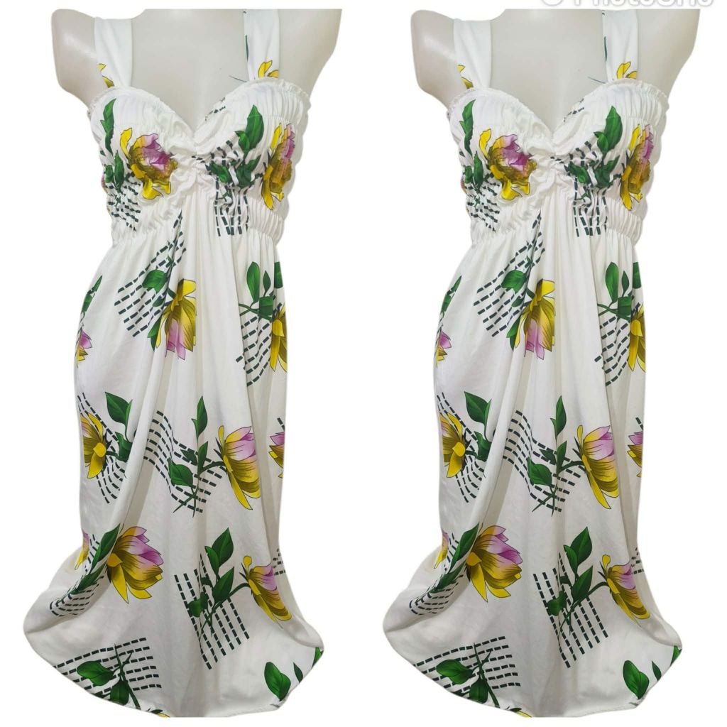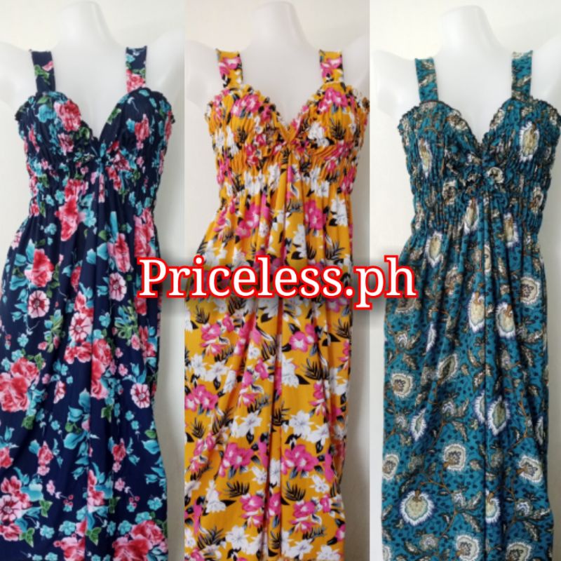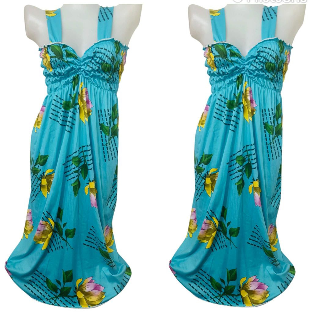 LONG SMOCKING DUSTER / DUSTER PAMBAHAY / MATERNITY DRESS ( SPAGHETTI V-NECK )