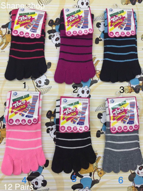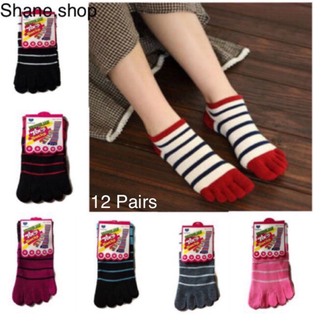 Shane 12 Pairs Toe Cotton Five Finger Socks Style:TS01-5