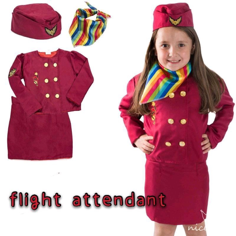 flight attendant career costume for kids,fit 4-7yrs old.free.size