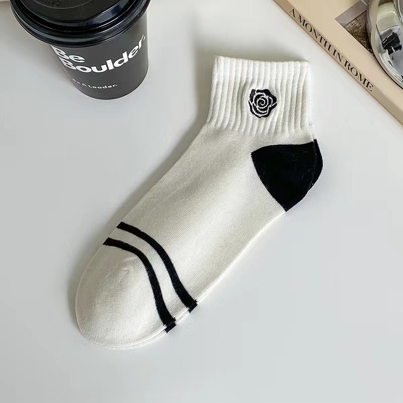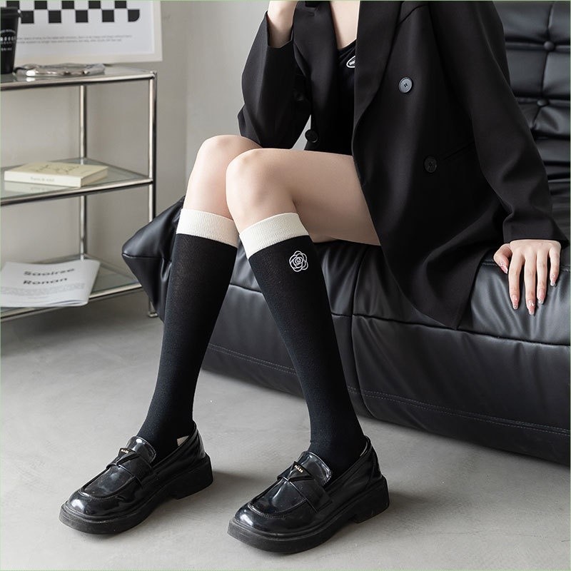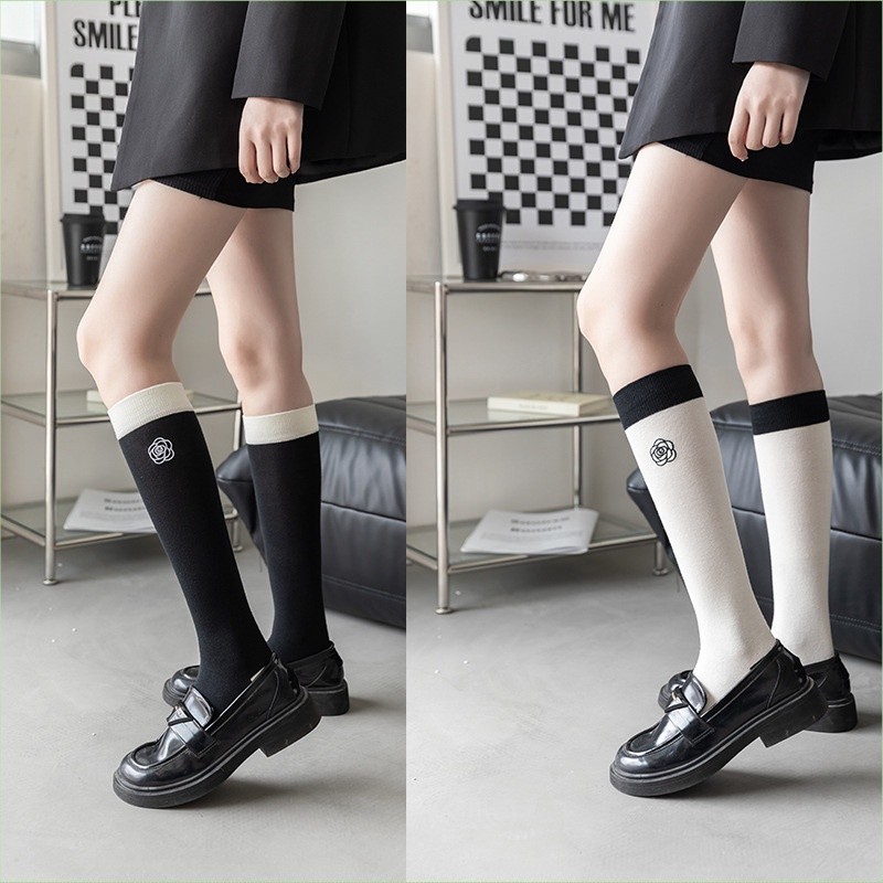 Black White Contrast Color Embroidered Calf Stitching Beautiful Legs ins Trendy Japanese Style Preppy Style jk Long Tube Knee