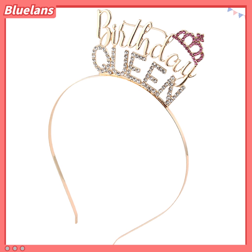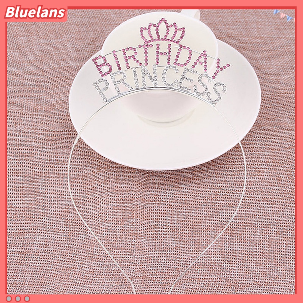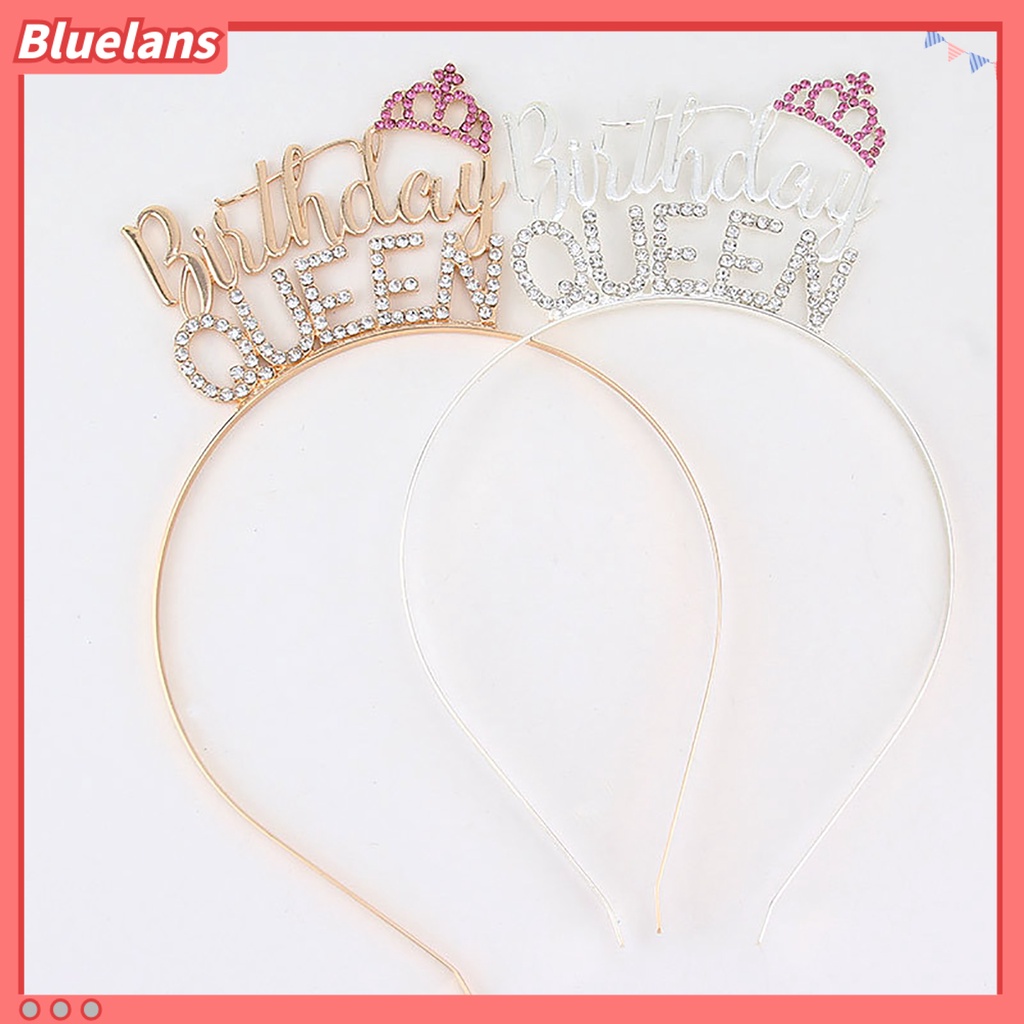 [BL] Tiara Headband Adorable Stretched to Fit Rhinestone Birthday Girl Queen Princess Headband for Birthday