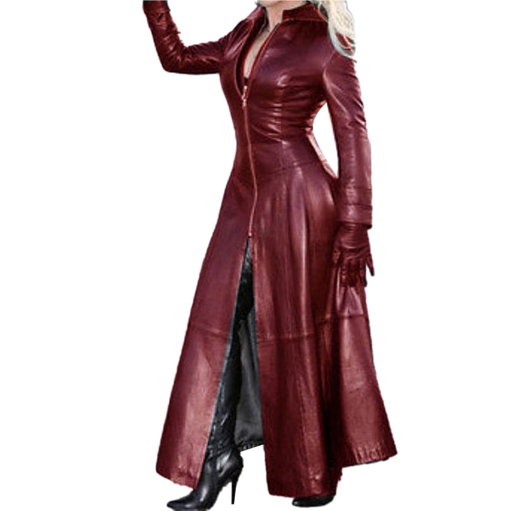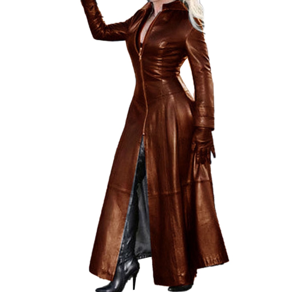 Bu Slim Fit Faux Leather Jacket for Women Long-lasting Faux Leather Parka Stylish Faux Leather Jacket for Women Slim Fit Trench Coat with Zipper Closure and Stand for Autumn