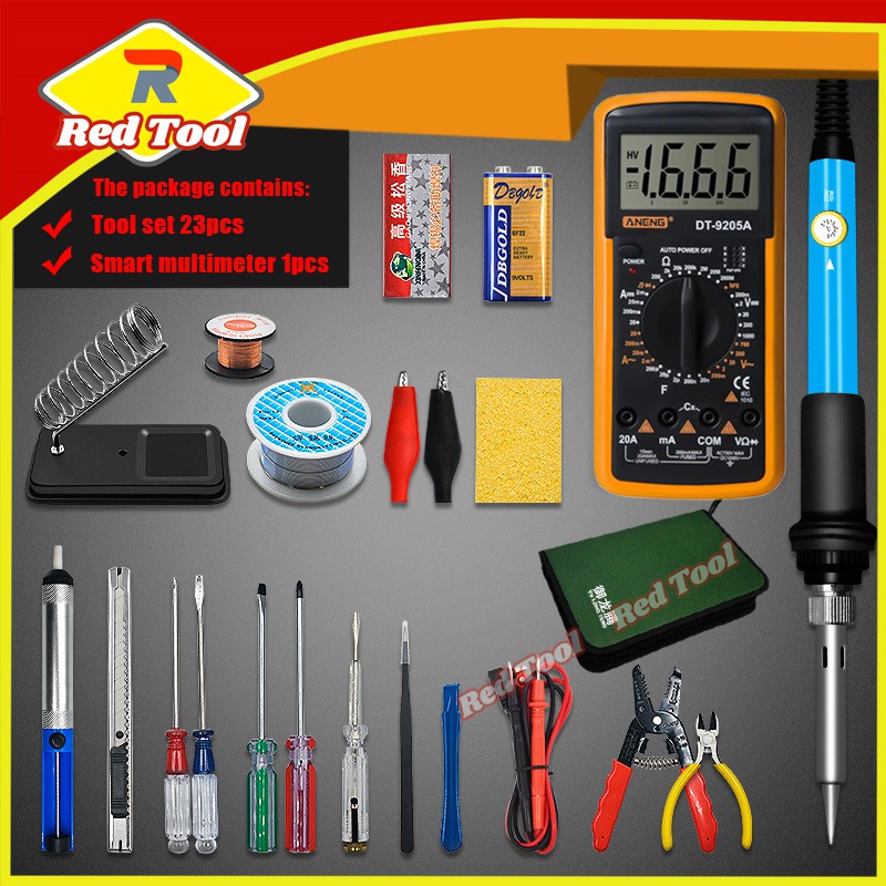 Soldering iron kit-soldering iron 60 W 194℉-896℉ adjustable temperature, digital multimeter 23 pcs