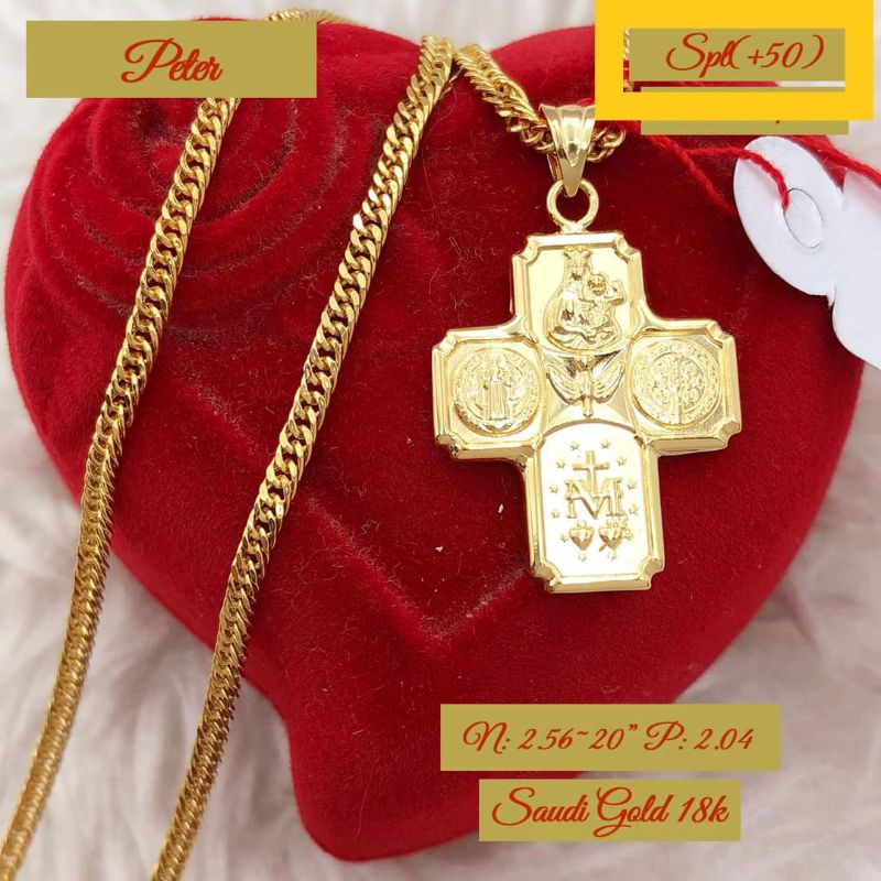 18K Saudi Gold Japan Style Necklace with Peter Cross Pendant Pawnable