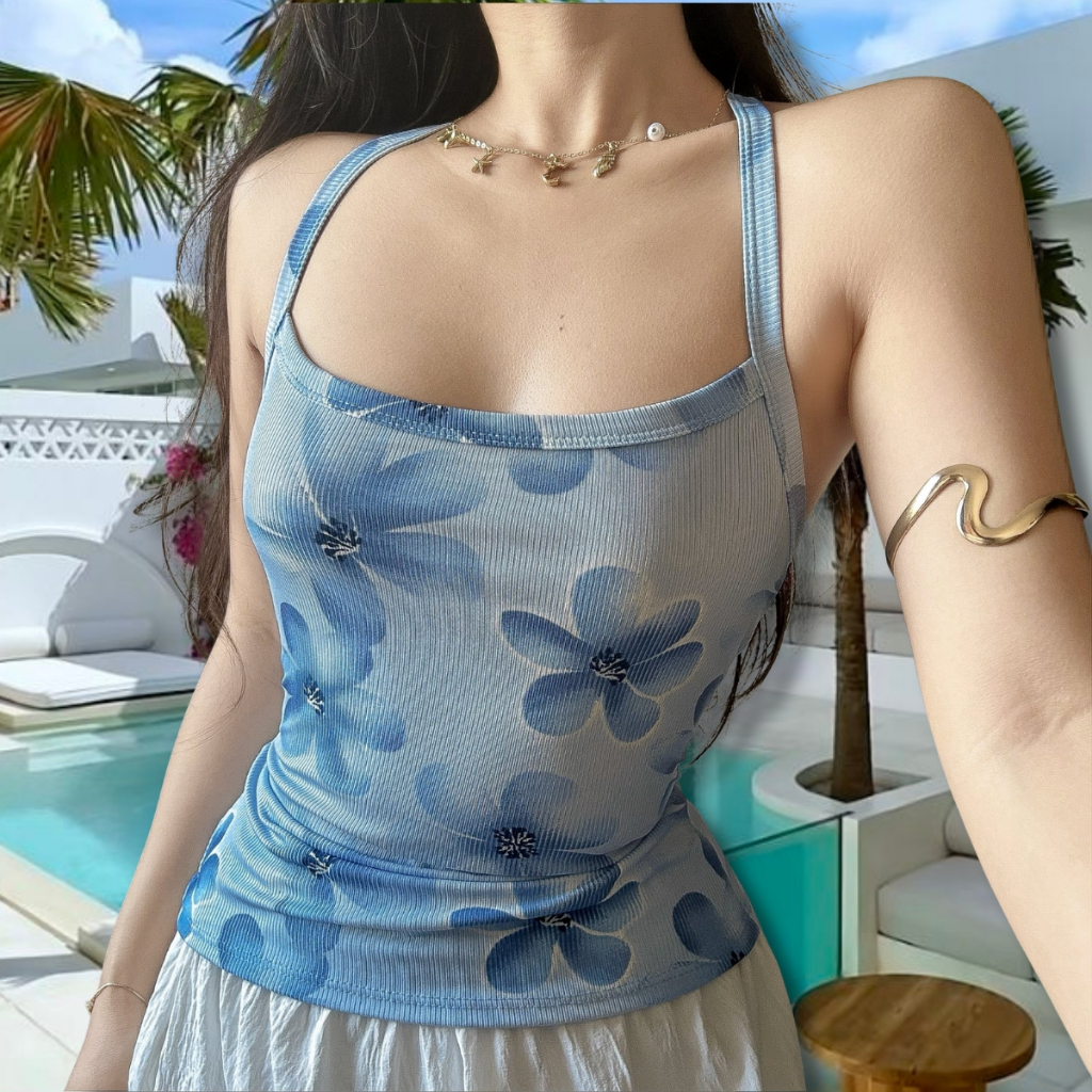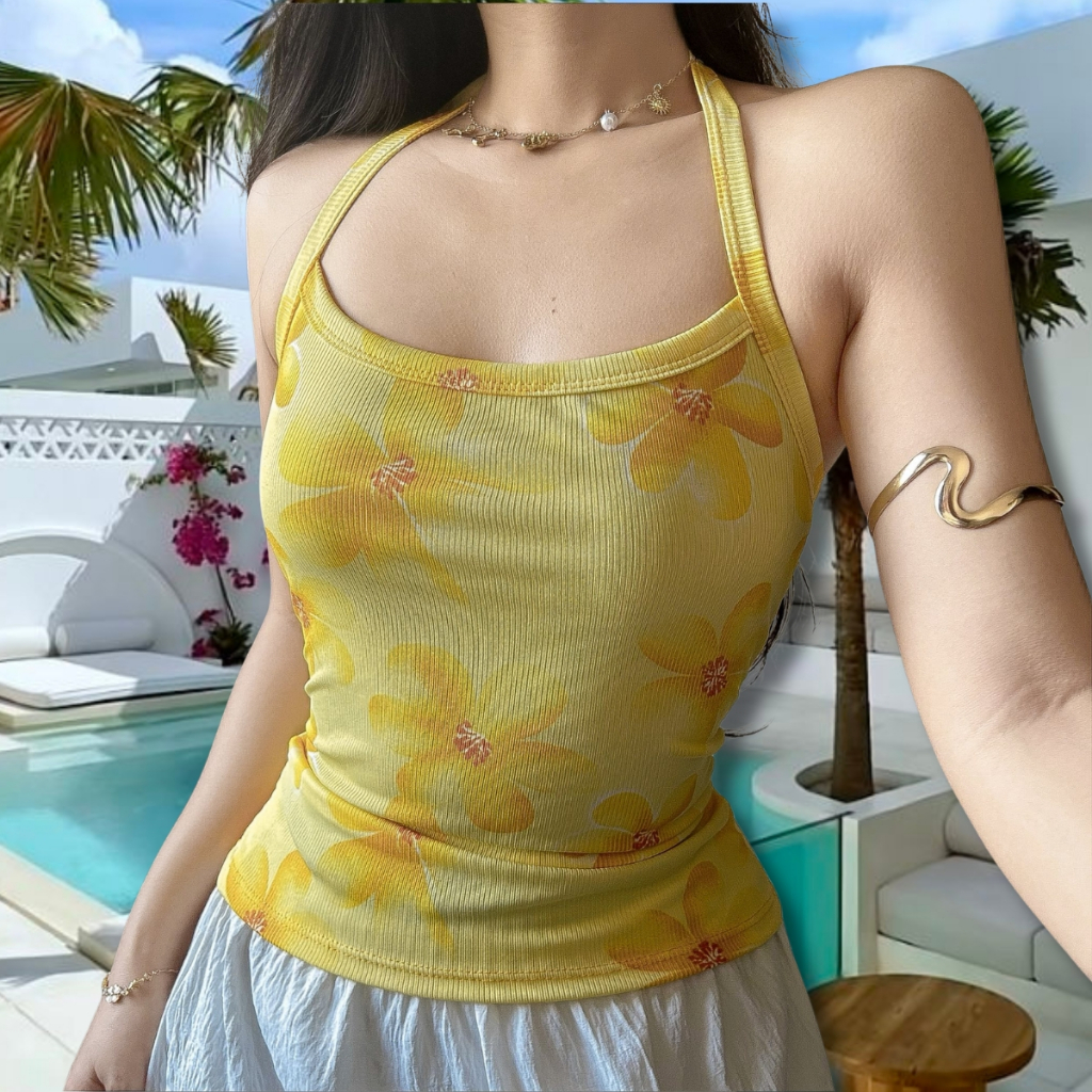 Summer Best OOTD Top For Woman Sleeveless Squareneck Backless Floral Top Best For Everyday Wear.