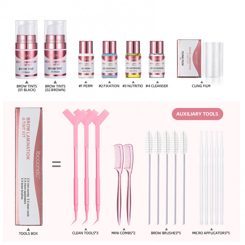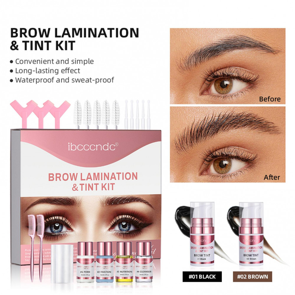 Eyebrow Lamination Kit Semi-permanent Brow Lift and Tint Kit Two Colors Eyebrow Tint Dye Kit DIY Fuller Thicker Eyebrows Includes Treatment Tools & Brushes