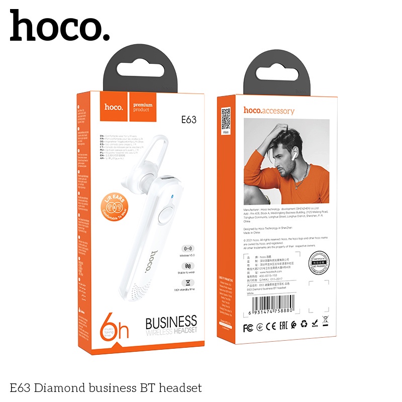 HOCO E63 Car Bluetooth Headset Business Wireless Bluetooth 5.0 In-Ear Headset With Microphone Universal Wireless Headset Sports Headphones For Smartphone Universal