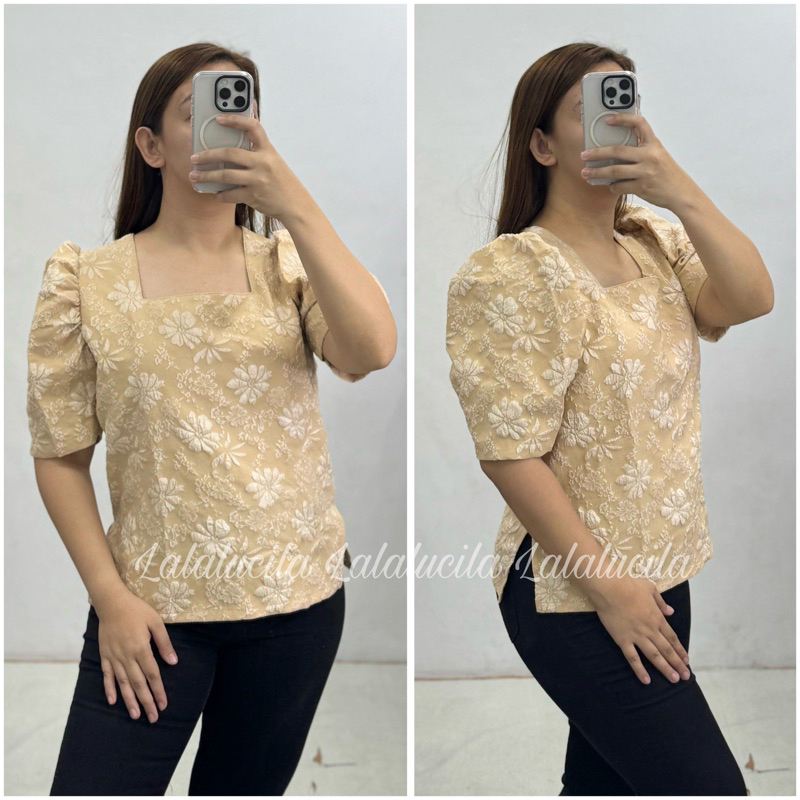 PLUS (L-3XL) Cecelia Square Neck Filipiñana Puffed Sleeves