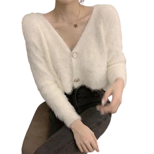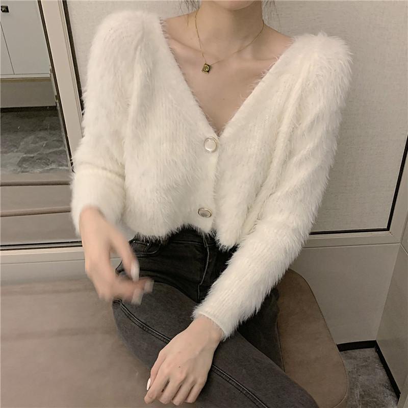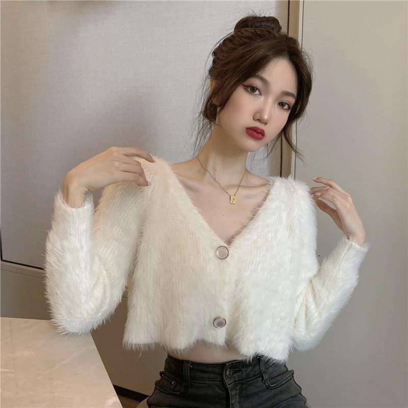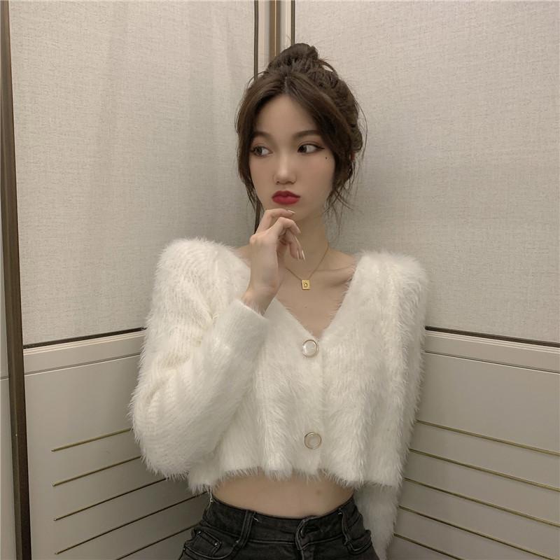2025 New Korean Version Loose V-neck Sweater Female Autumn Winter Wear Knitted Short Cardigan