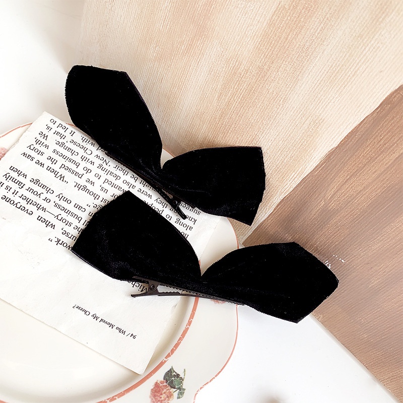 Retro Black Silk Face Bow Hairpin Korean Style Girl Bangs Hairpin Fashion Accessories