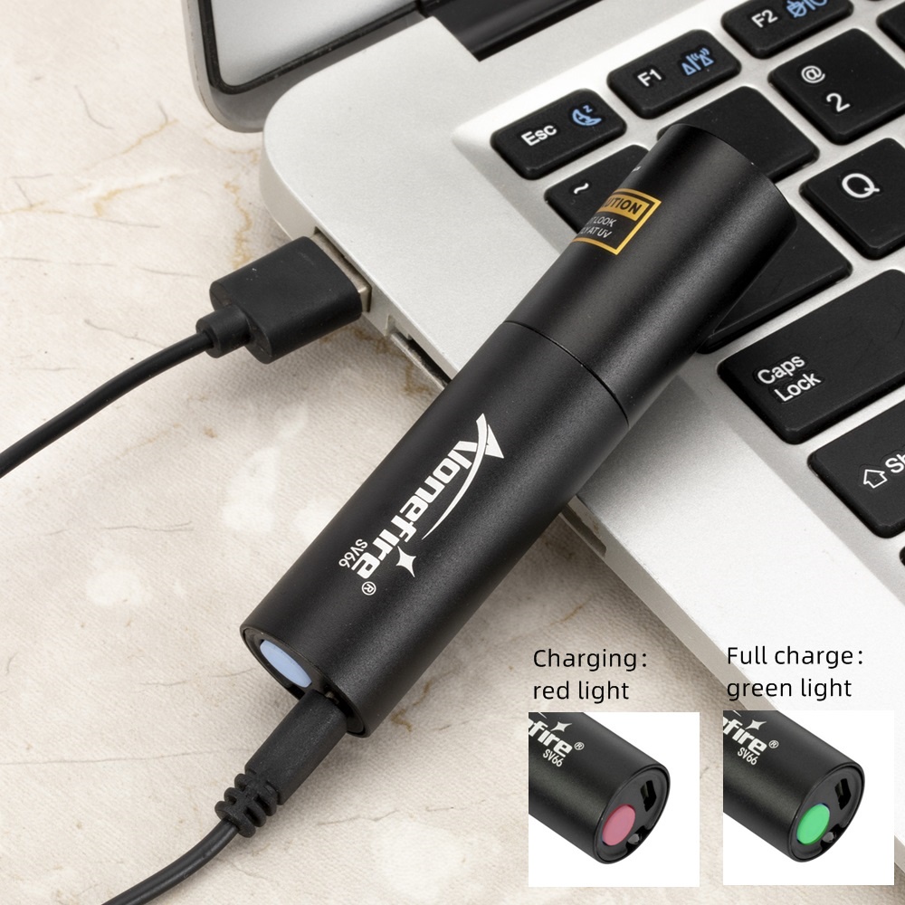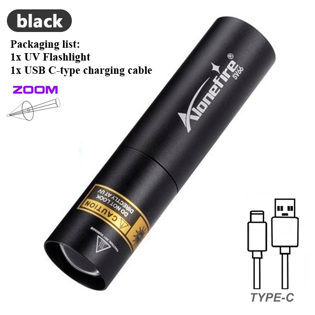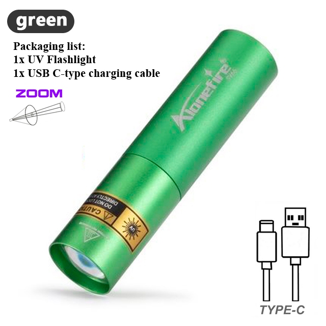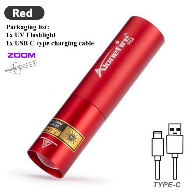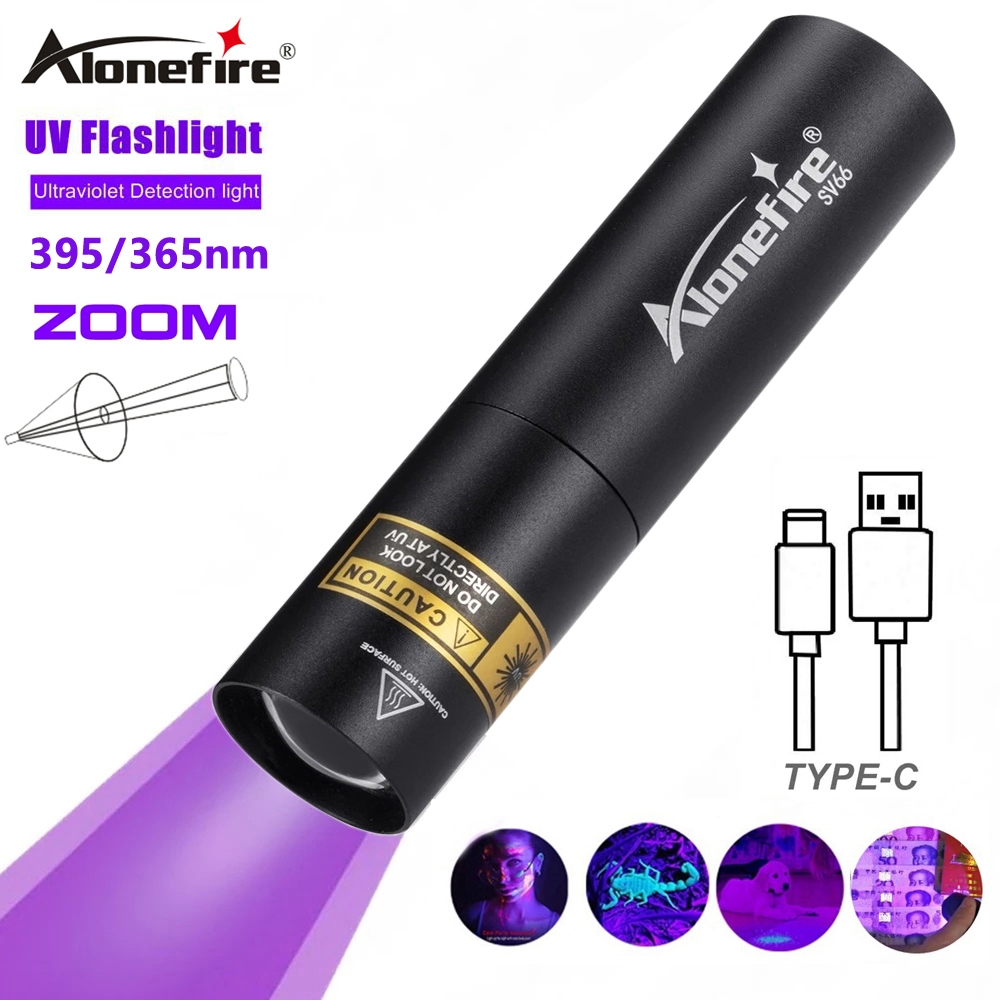AloneFire SV66 Zoom Mini 395/365nm UV Flashlight USB Rechargeable Portable Money Detector LED Torch