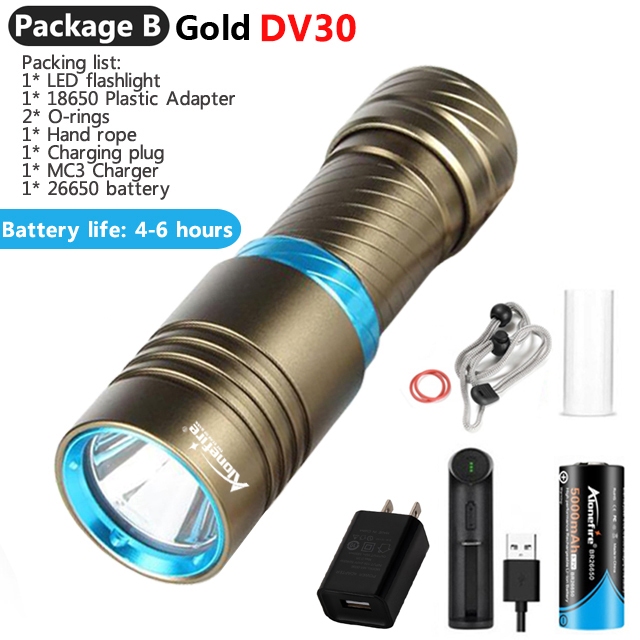 AloneFire DV30 Led Scuba Diving Flashlight Underwater Waterproof Lamp 3000LM Camping Light Torch