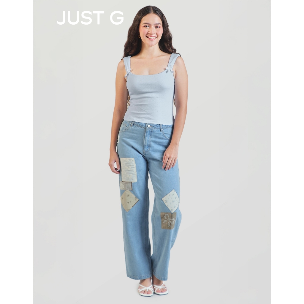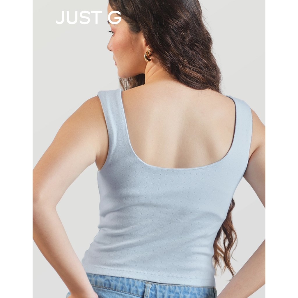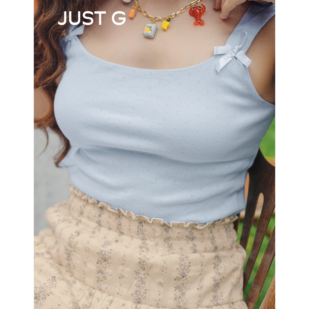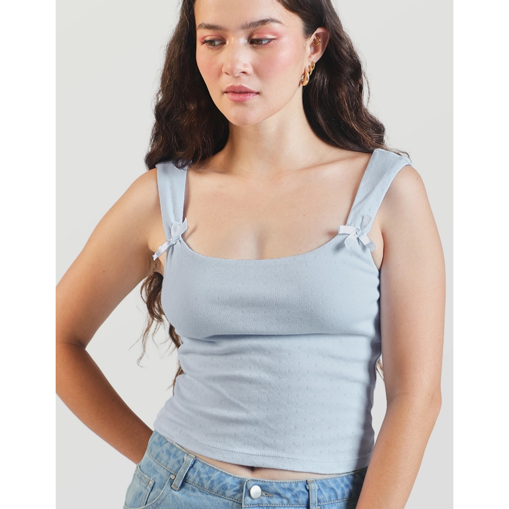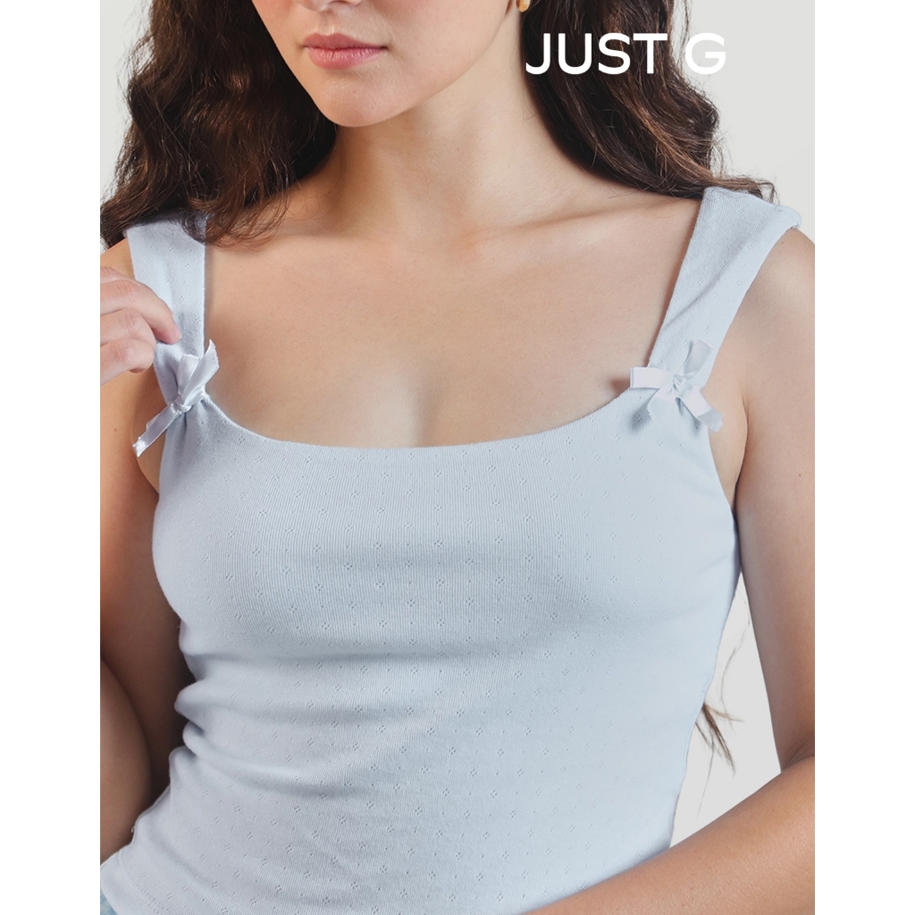 Just G Pointelle Jersey Corset-Like Tank Top With Contrast Satin Bows