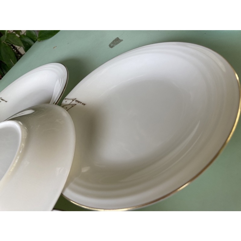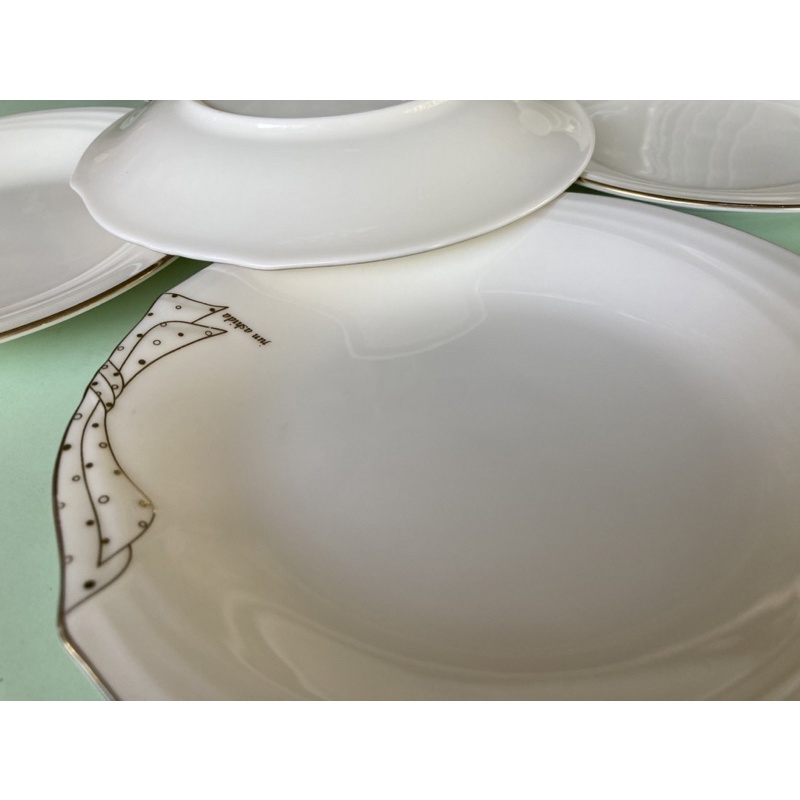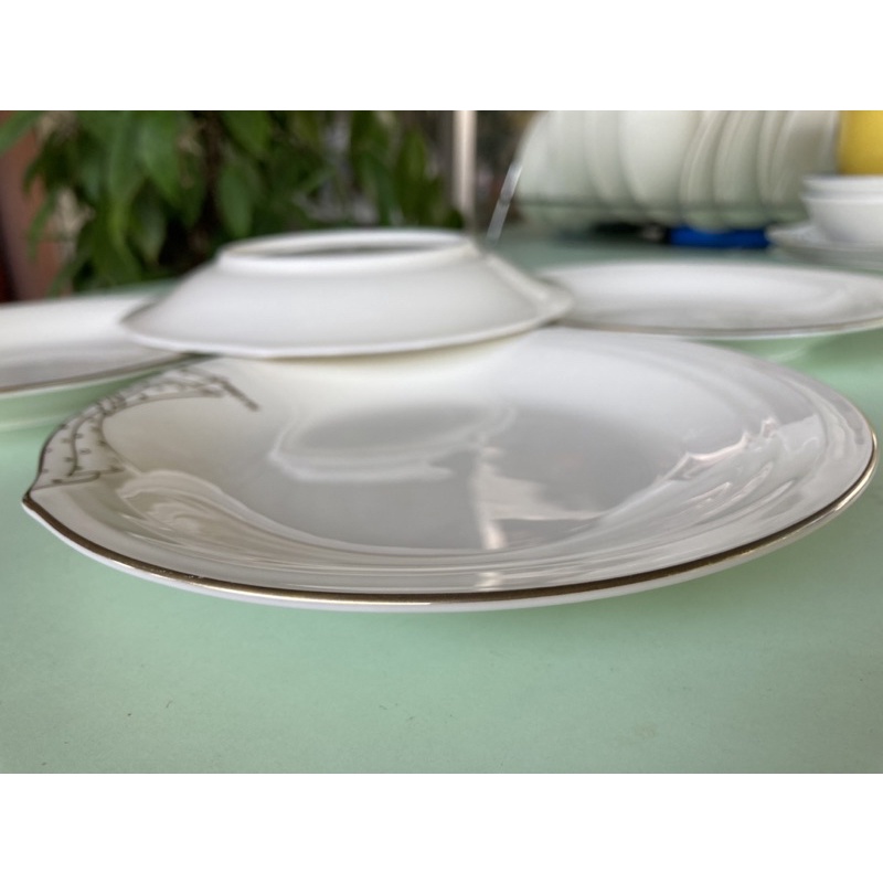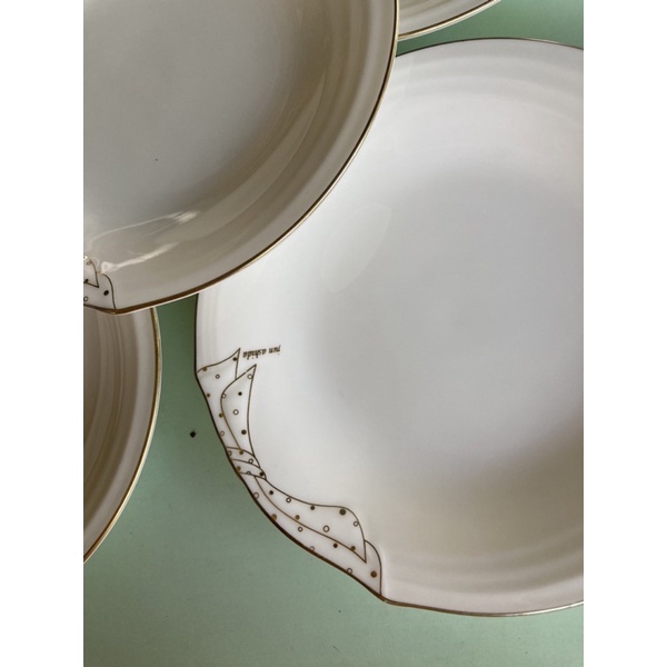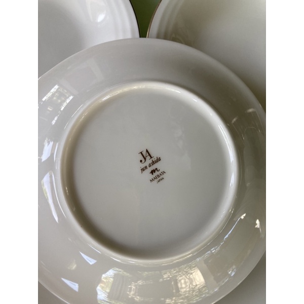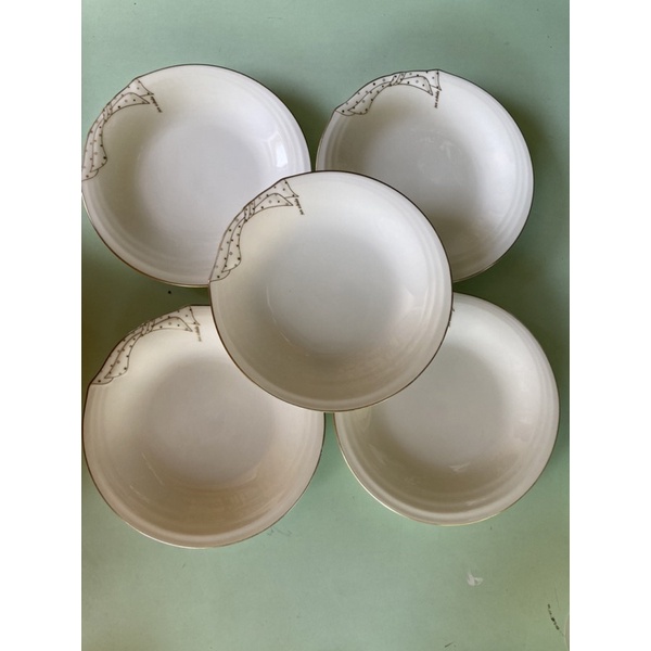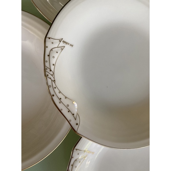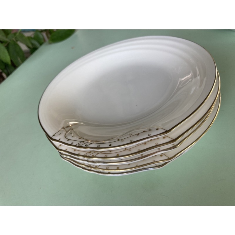 Japan surplus Maebata Jun Ashida 5 porcelain dessert 6.5” plates gold dotted near gold accents rim