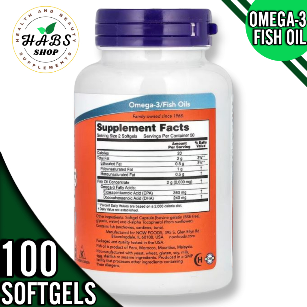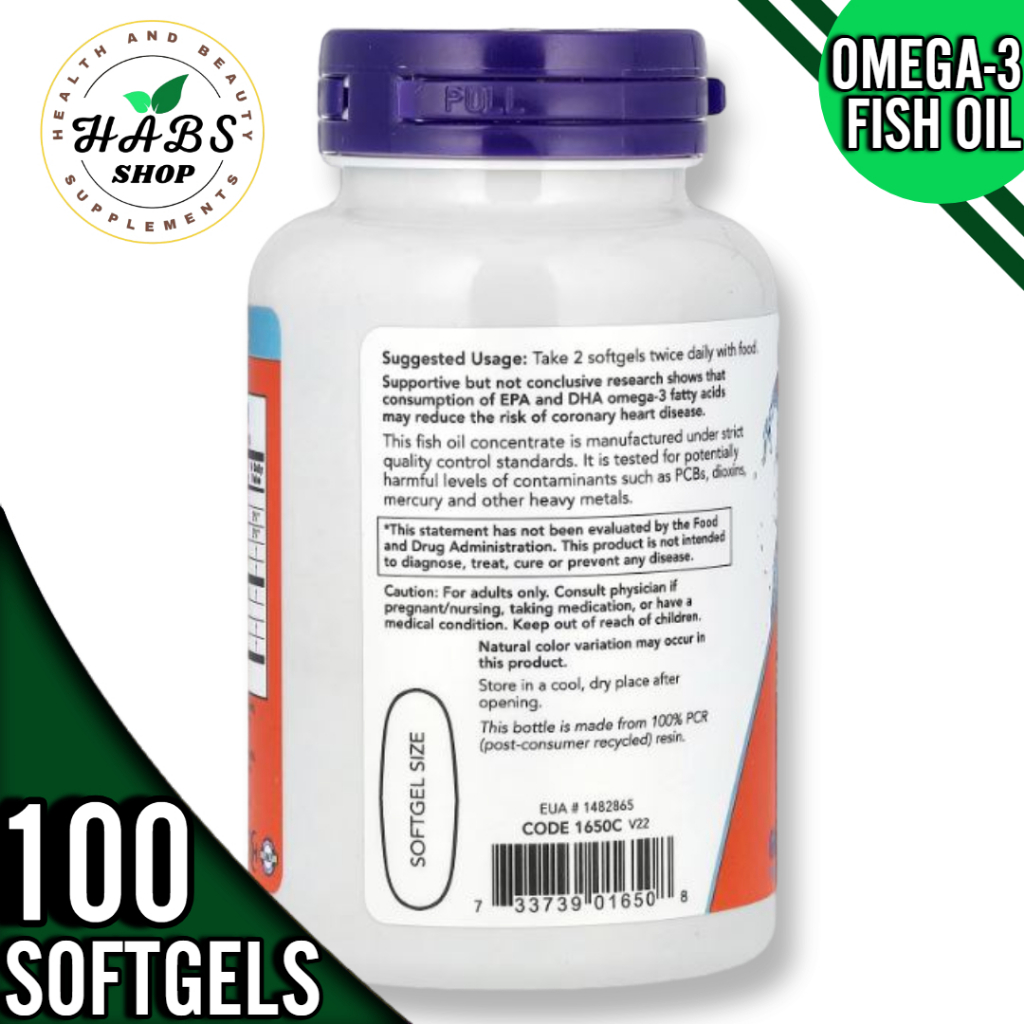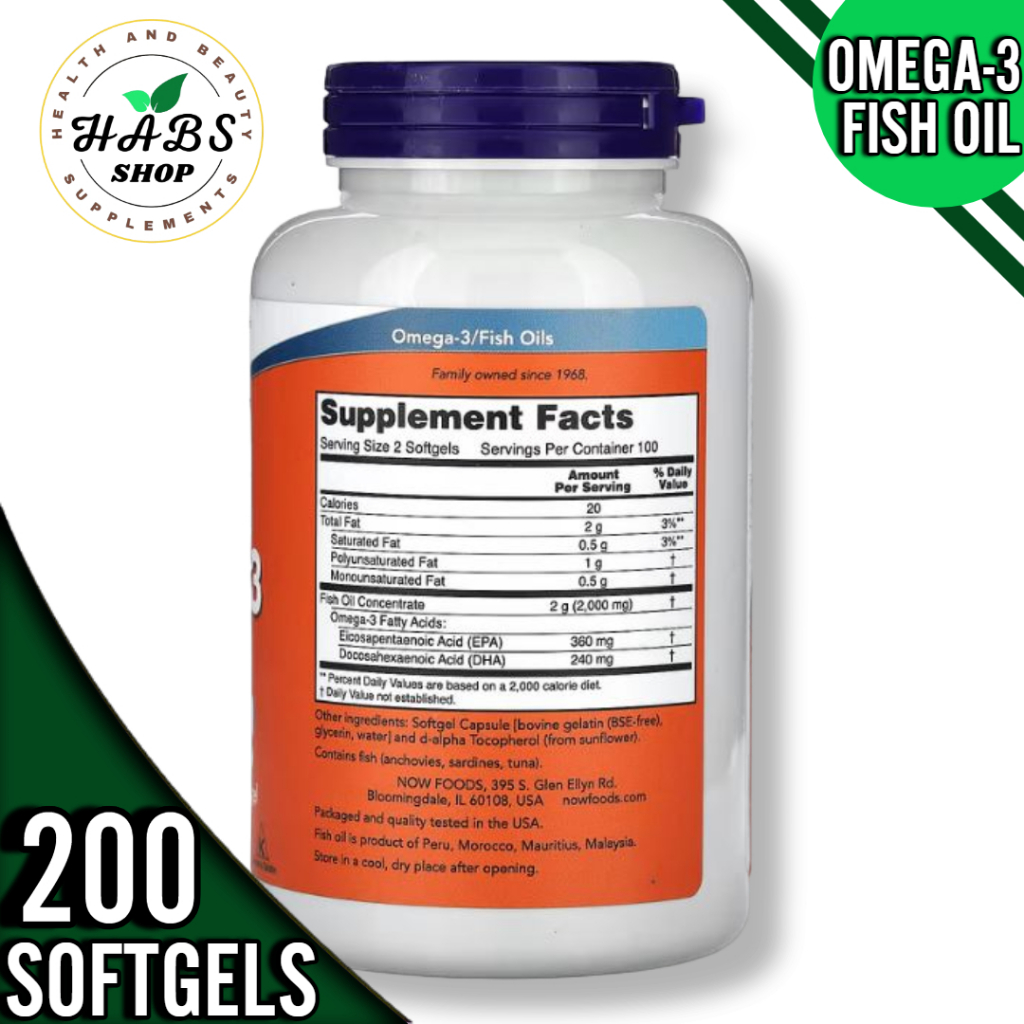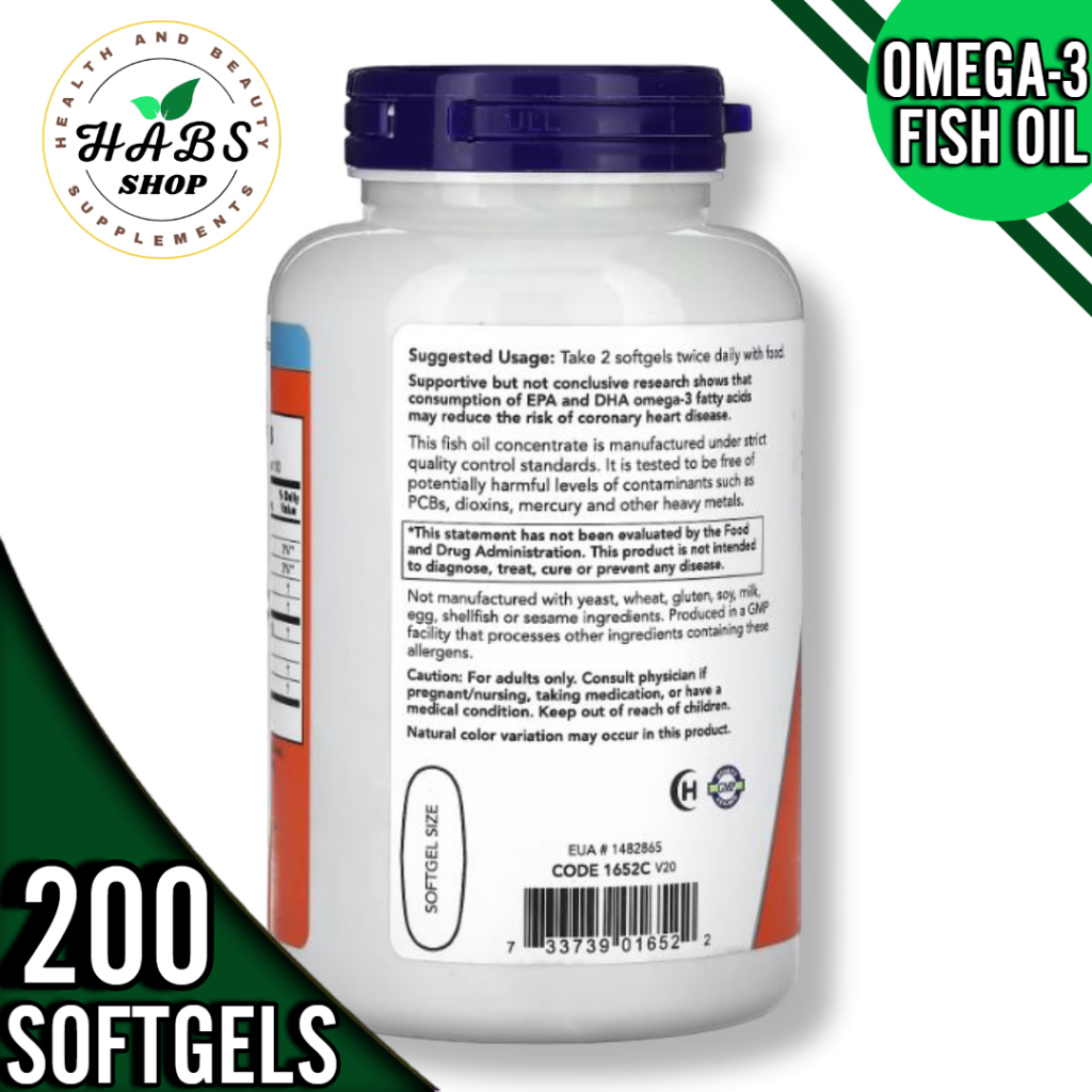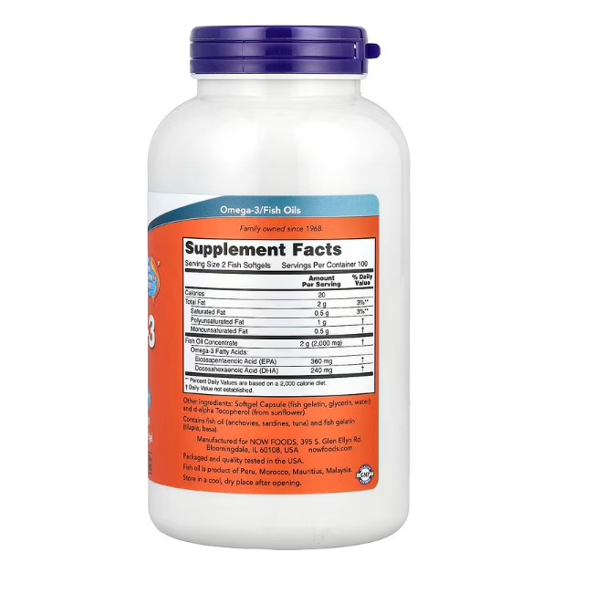NOW Foods, Omega-3 Fish Oil, 1,000 mg,180 EPA - 120 DHA, 100/200 Softgels or1000mg,200 fish softgels