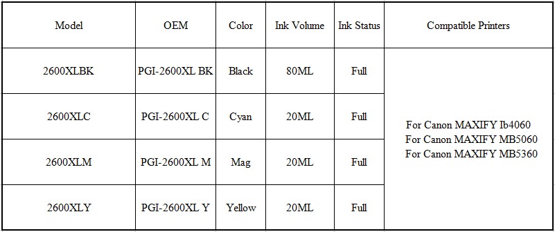 4PK For Canon PGI2600 PGI2600XL Pigment BK/C/M/Y With Chip Ink Cartridge For Canon MAXIFY Ib4060/MAX